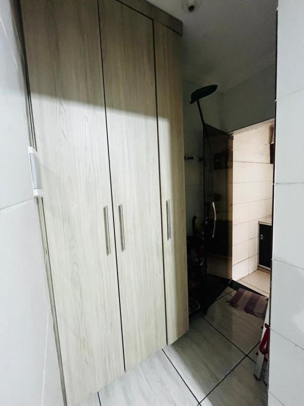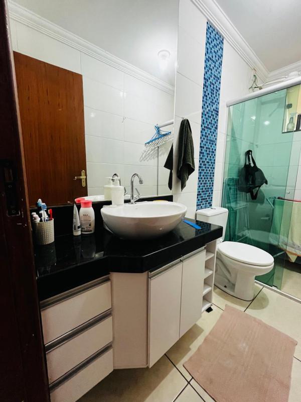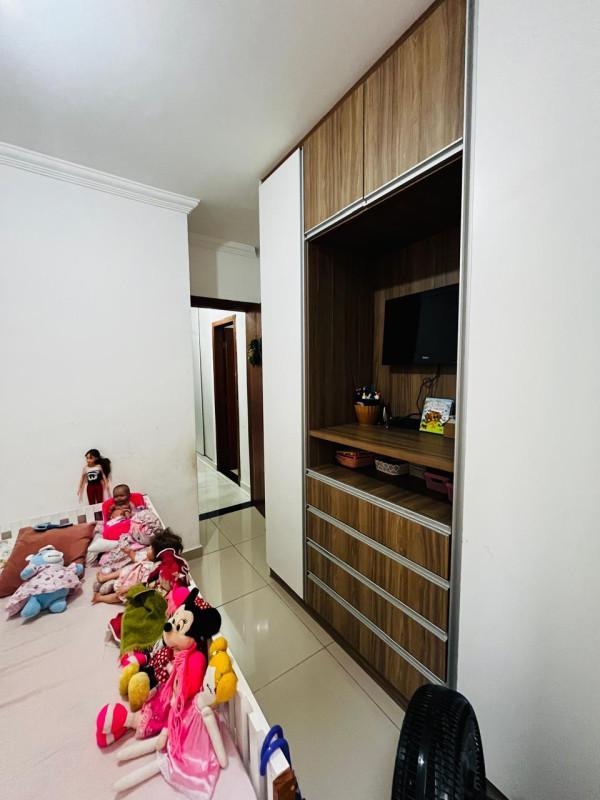 Pisos em porcelanato e cerâmica, molduras em gesso nos ambientes, armários planejados quartos, corredor e área de serviço, bancadas em granito, suíte e banho com box em vidro blindex, espelho, pia em granito com cuba em porcelana e planejado sob pia.