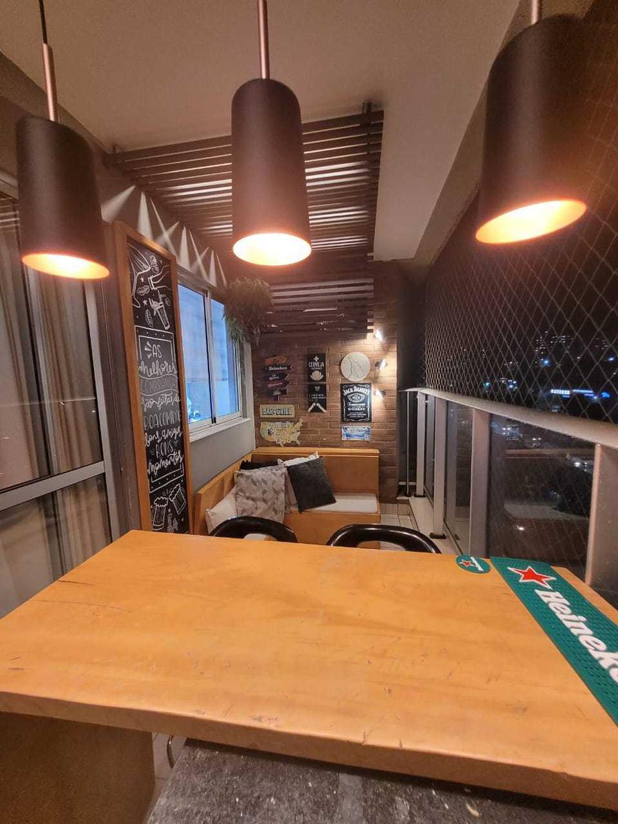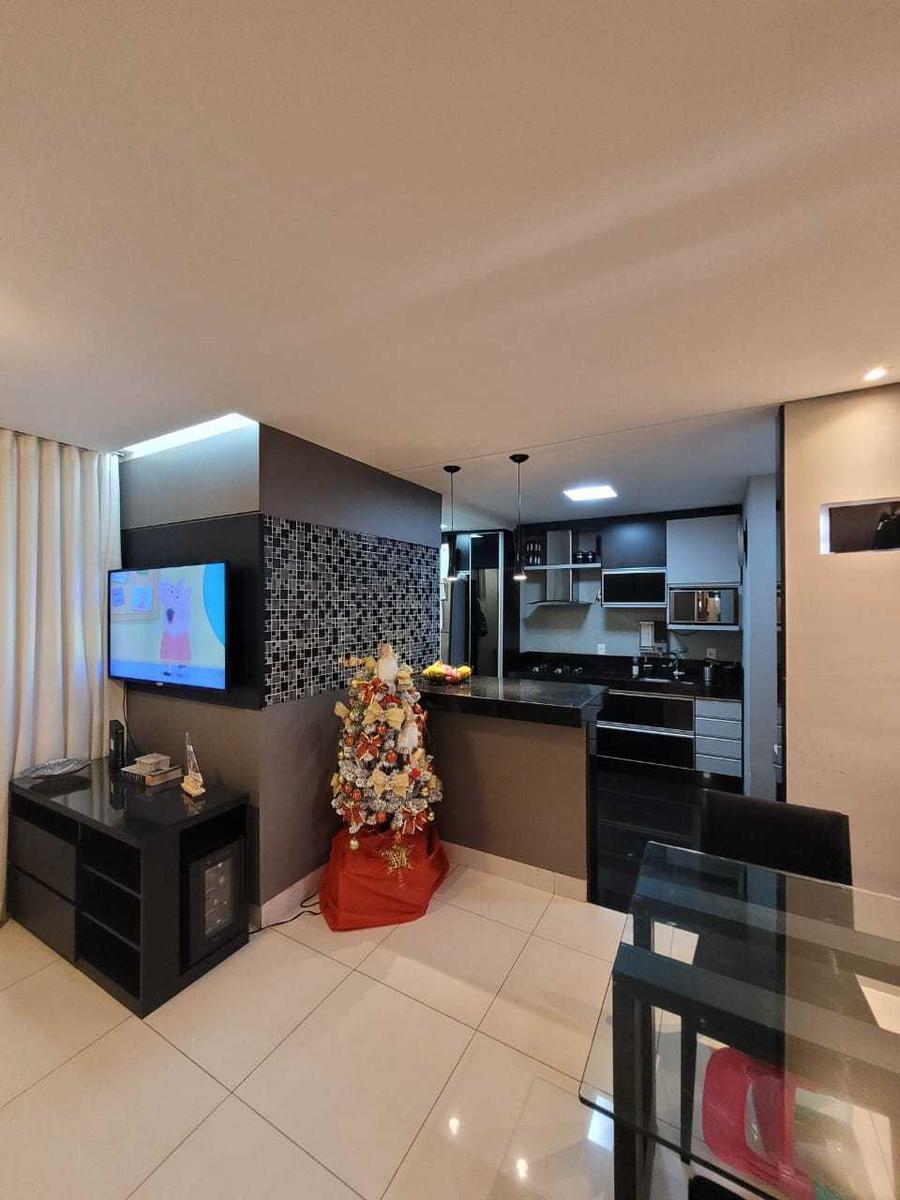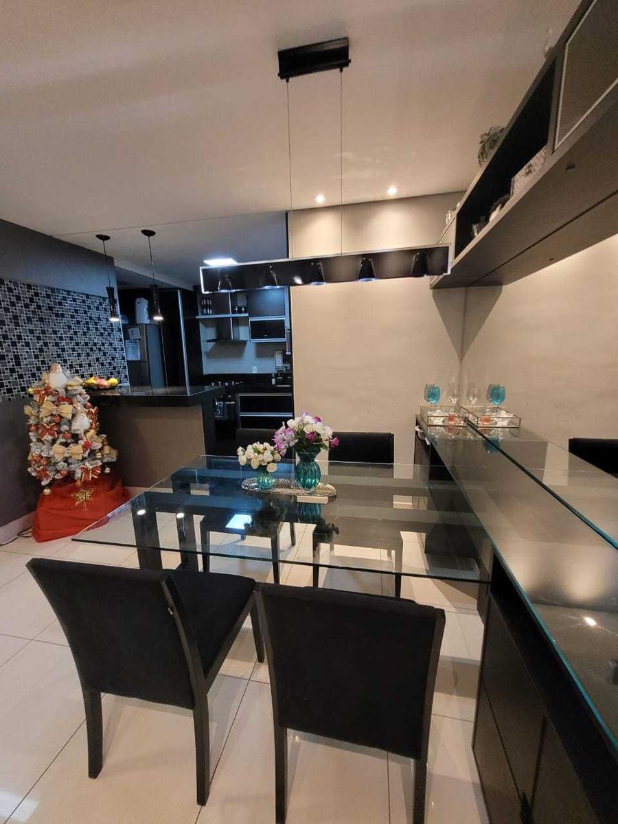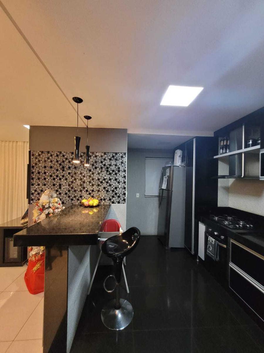 "Apartamento de 03 quartos com armários, sala para dois ambientes, cozinha americana, varanda com churrasqueira e 02 vagas livres, demarcadas e cobertas.