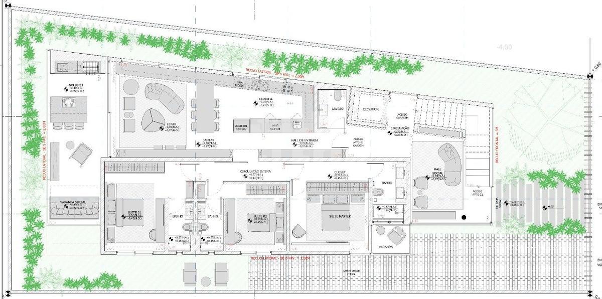 Cada apartamento conta com 3 suítes, sendo uma delas a suíte master com varanda privativa, proporcionando mais privacidade e amplitude. A área social é integrada, com sala de estar, sala de jantar e cozinha em conceito aberto, promovendo convivência e funcionalidade no dia a dia. Um dos destaques é a varanda gourmet, com acesso por uma porta de vidro que se conecta à sala de estar, ideal para receber amigos e aproveitar momentos em família.