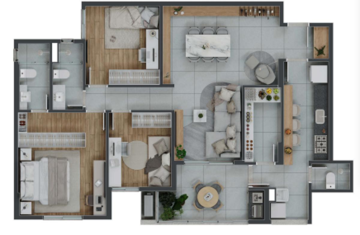 Infraestrutura: Porteiro físico e virtual 24 hrs; interfone; portão eletrônico; gás canalizado; elevadores panorâmico; varanda gourmet; salão de festas; espaço fitness; coworking; lavanderia; sala de massagem, SPA e salão; brinquedoteca; playground; espaço Kids; quadra de areia; quadra poliesportiva; quadra de tênis; piscina principal; piscina com prainha/ deck molhado; piscina infantil; piscina aquecida; sauna; pet place; espaço p/ carregamento de carro elétrico.