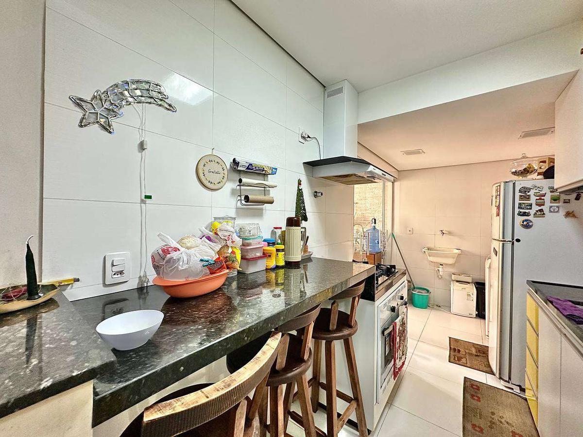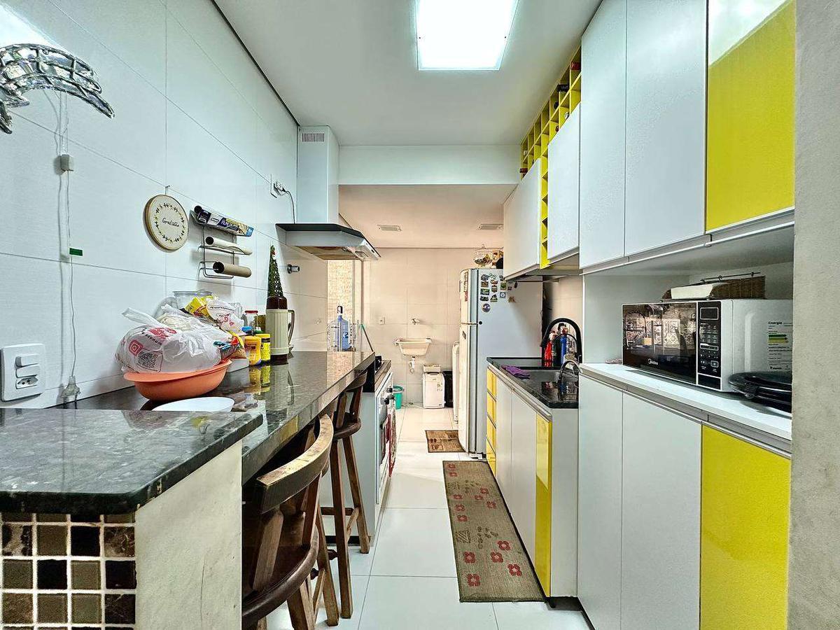 Possui cozinha com armários planejados, área de serviço separada, espaço gourmet com churrasqueira e banheiros com box.