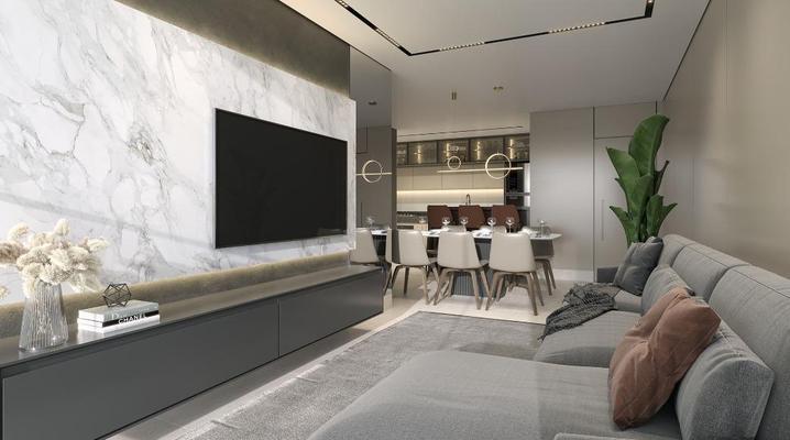 Área privativa , 3 quartos sendo 1 suite com closet, sala para dois ambientes, lavabo, banho social, cozinha , área de serviço e área externa de 27,41 m² aproximadamente.