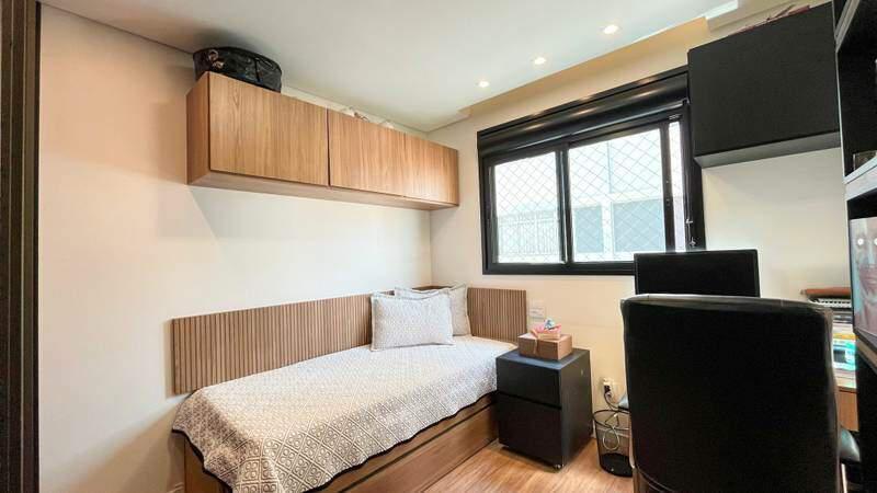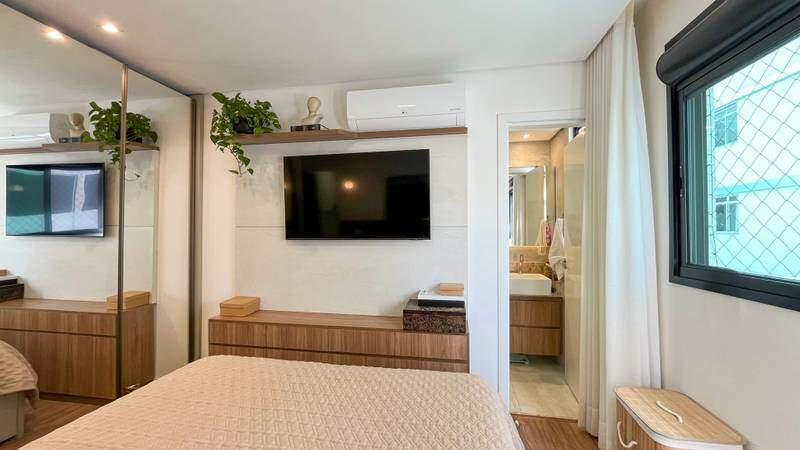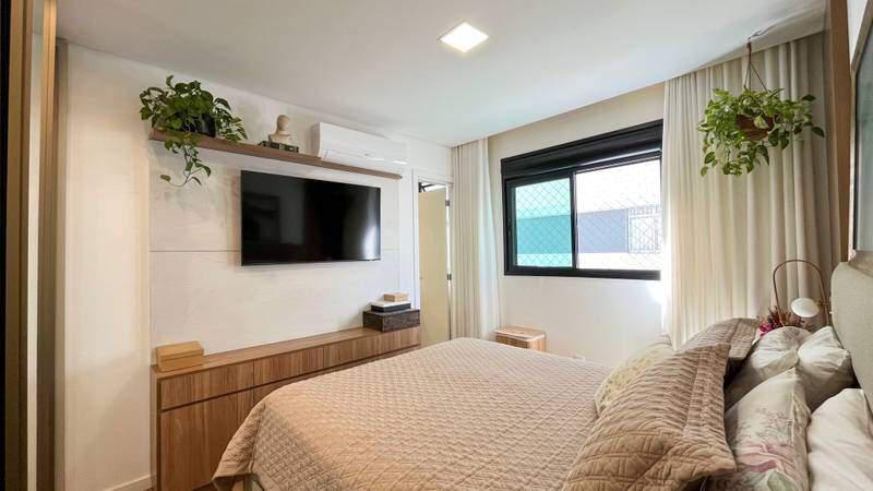 3 quartos com piso vinílico de madeira, sendo 1 suíte e 2 semi-suítes