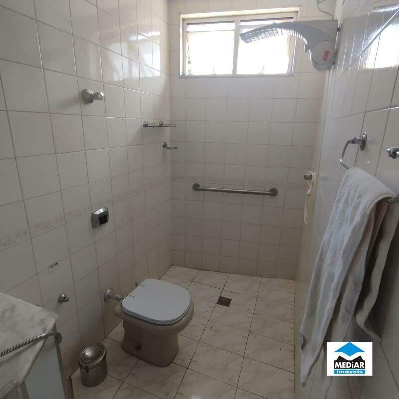 - Banheiro social com box em vidro temperado , armário sob bancada em granito , piso em cerâmica