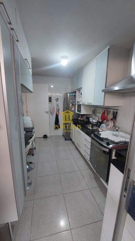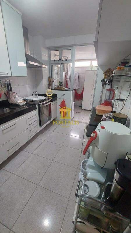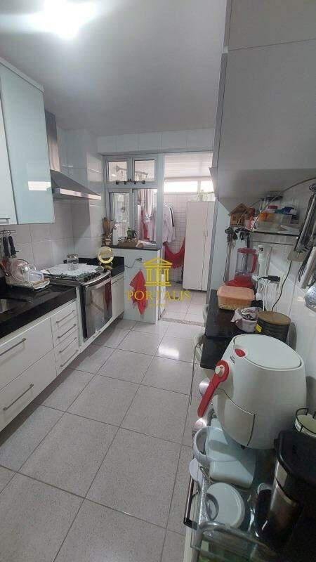 Cozinha com bancadas em granito, piso em porcelanato e armário