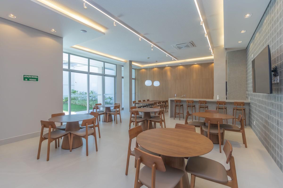 O condomínio conta com torre única e apenas 28 apartamentos, garantindo exclusividade, privacidade e valorização. As áreas sociais são entregues decoradas, com Wi-Fi nas áreas de convívio, além de iluminação em LED nas áreas comuns, reforçando conforto e eficiência.