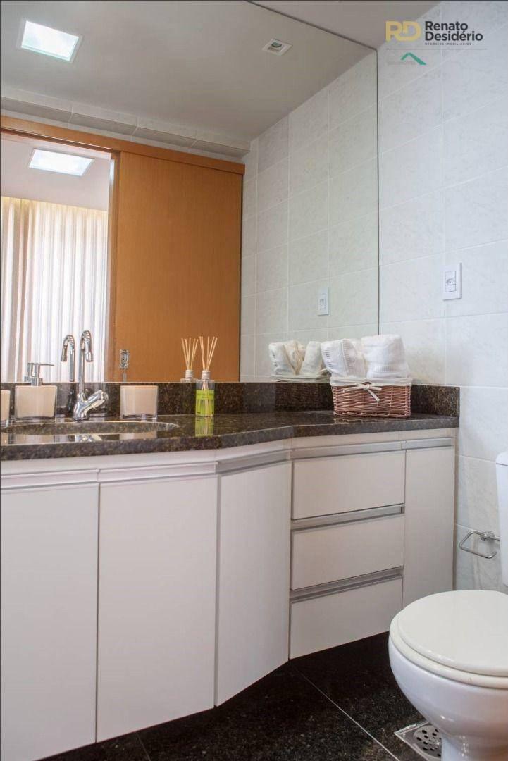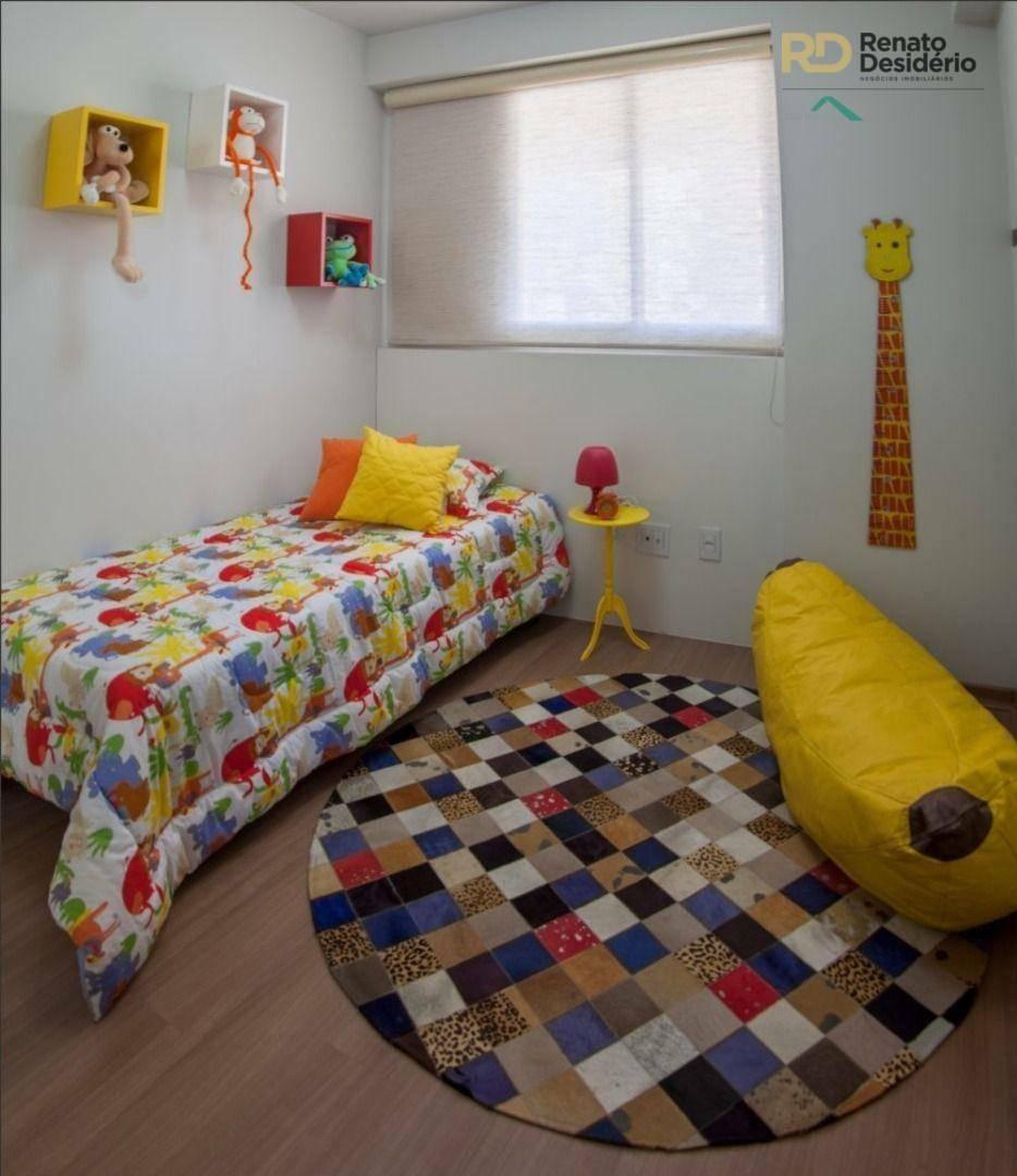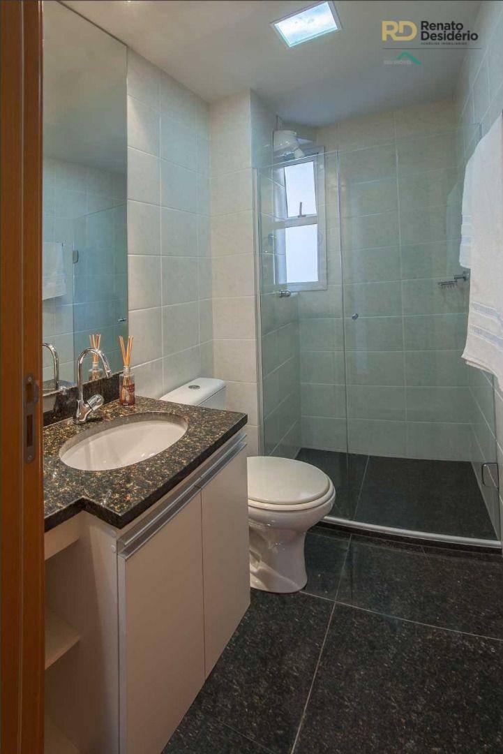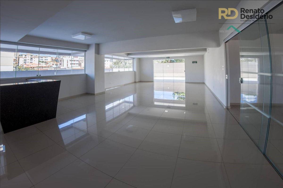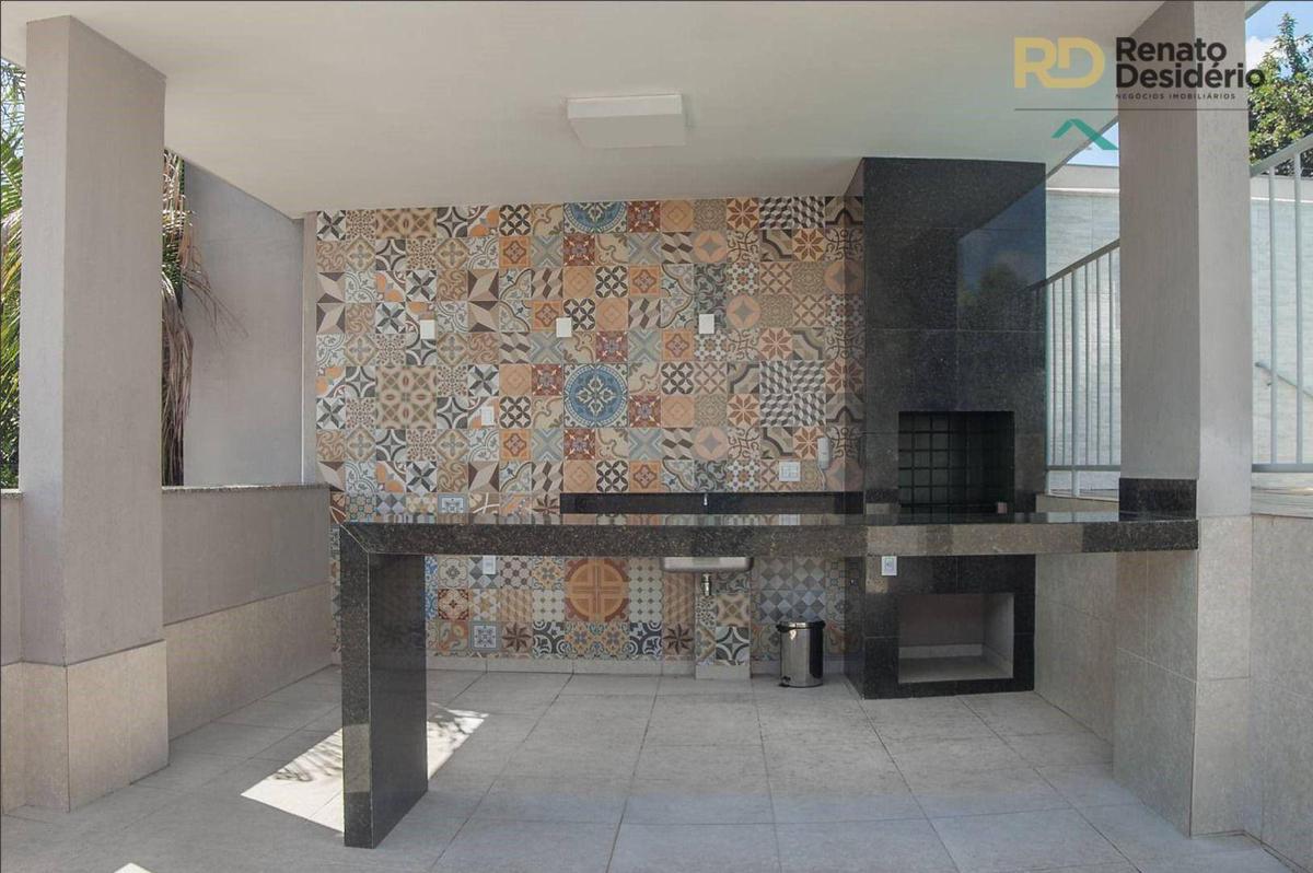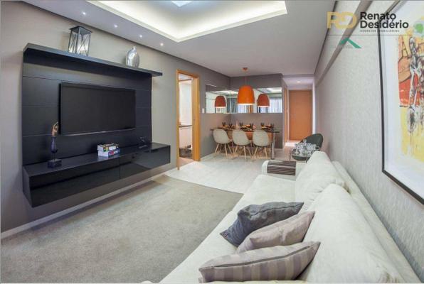 3 quartos com armários, sendo 1 com suíte com armário, sala com piso em porcelanato, banho social com armário, varanda gourmet com churrasqueira, cozinha gourmet com cook top e forno elétrico, bancada em granito, área de serviço, banho de serviço e 2 vagas.