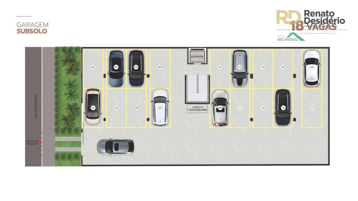 Prédio sobre pilotis, 100% revestido em cerâmica, elevador, interfone, portão eletrônico, água individualizada, gás canalizado, 02 vagas na garagem. (33 e 34)