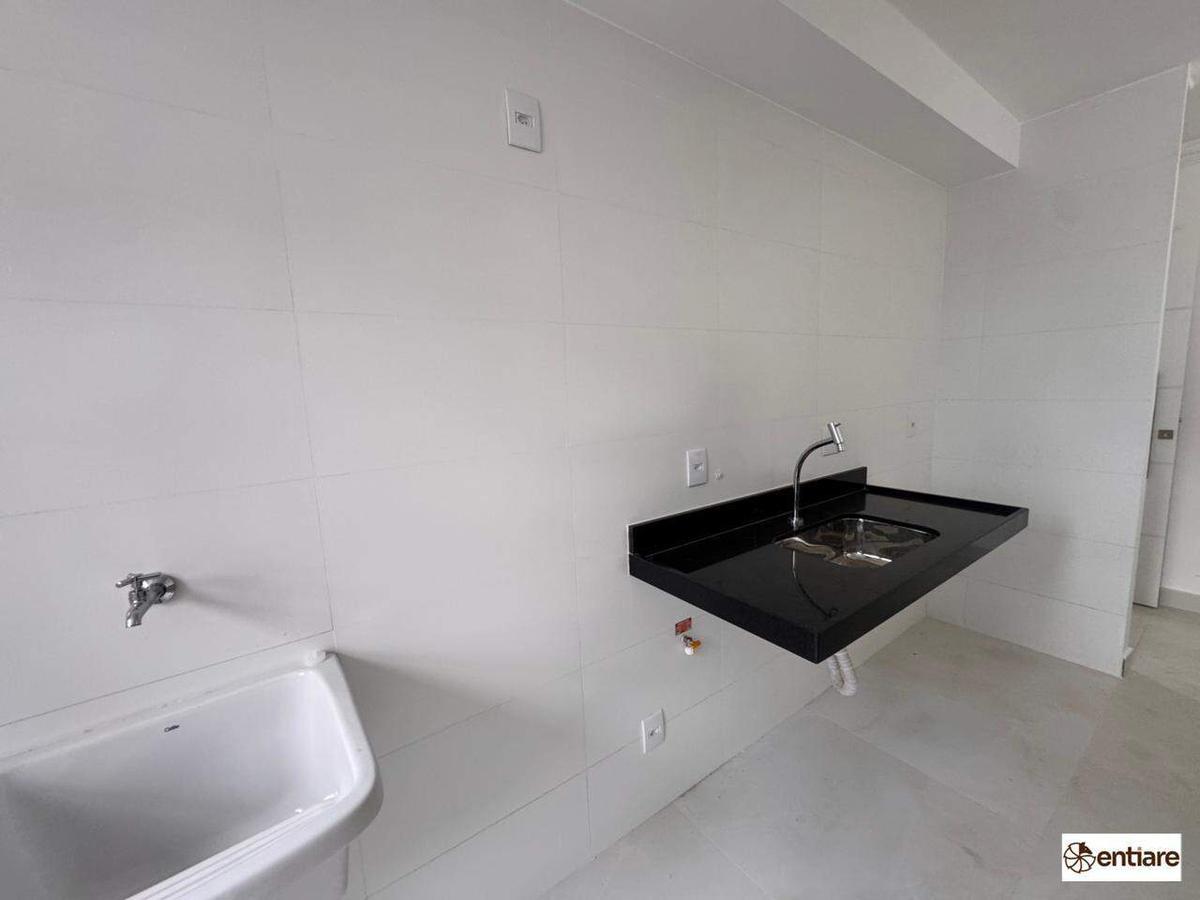 A cozinha é ampla e funcional, com bancada em granito e piso em porcelanato, perfeita para quem valoriza praticidade no dia a dia. O imóvel também possui banheiro social com acabamento em granito e box em blindex, além de área de serviço independente com tanque.
