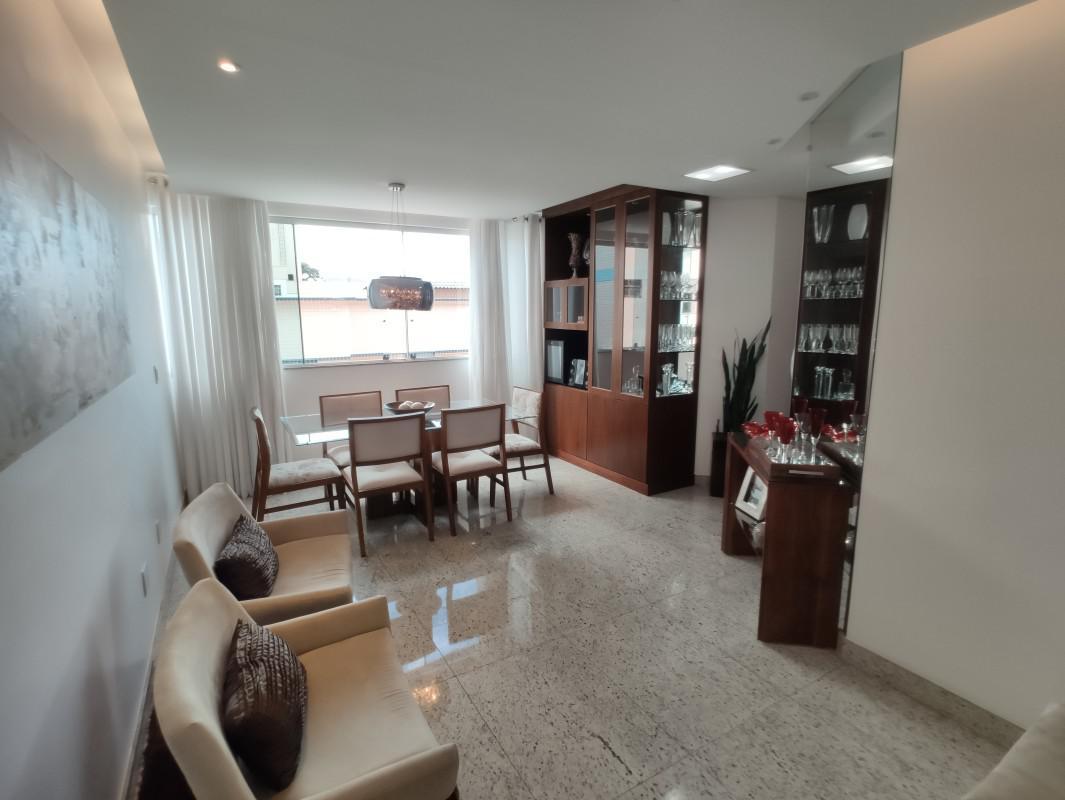 Sala ampla para 02 ambientes com excelente cristaleira, piso em granito, rebaixamento em gesso com iluminação planejada;