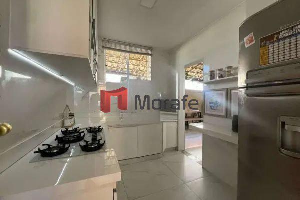 Cozinha funcional, com armários planejados, bancada em granito e piso em porcelanato.