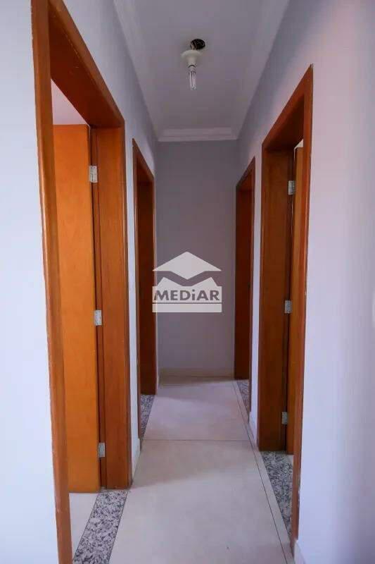 03 quartos com piso em porcelanato, sendo 01 suíte