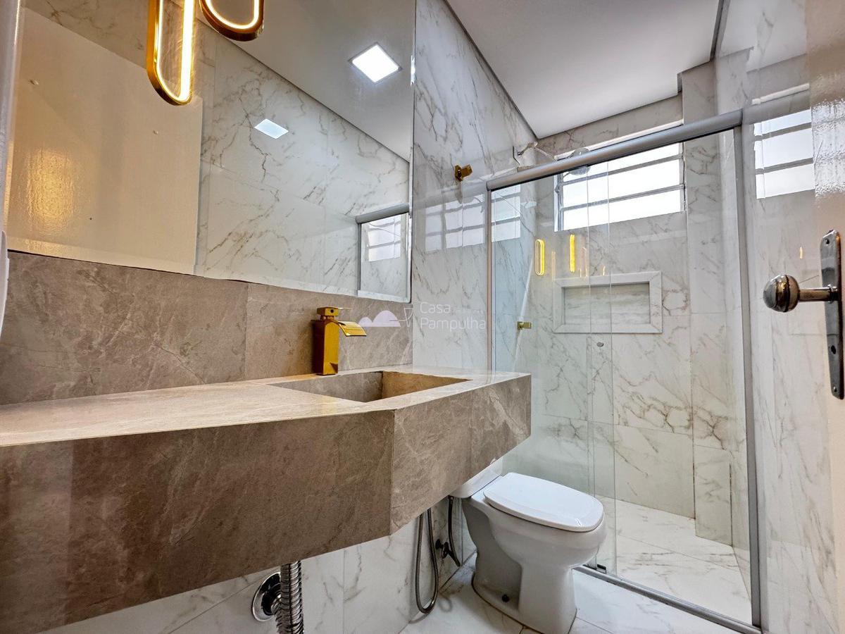 - Banheiro social com espelho e box blindex;
