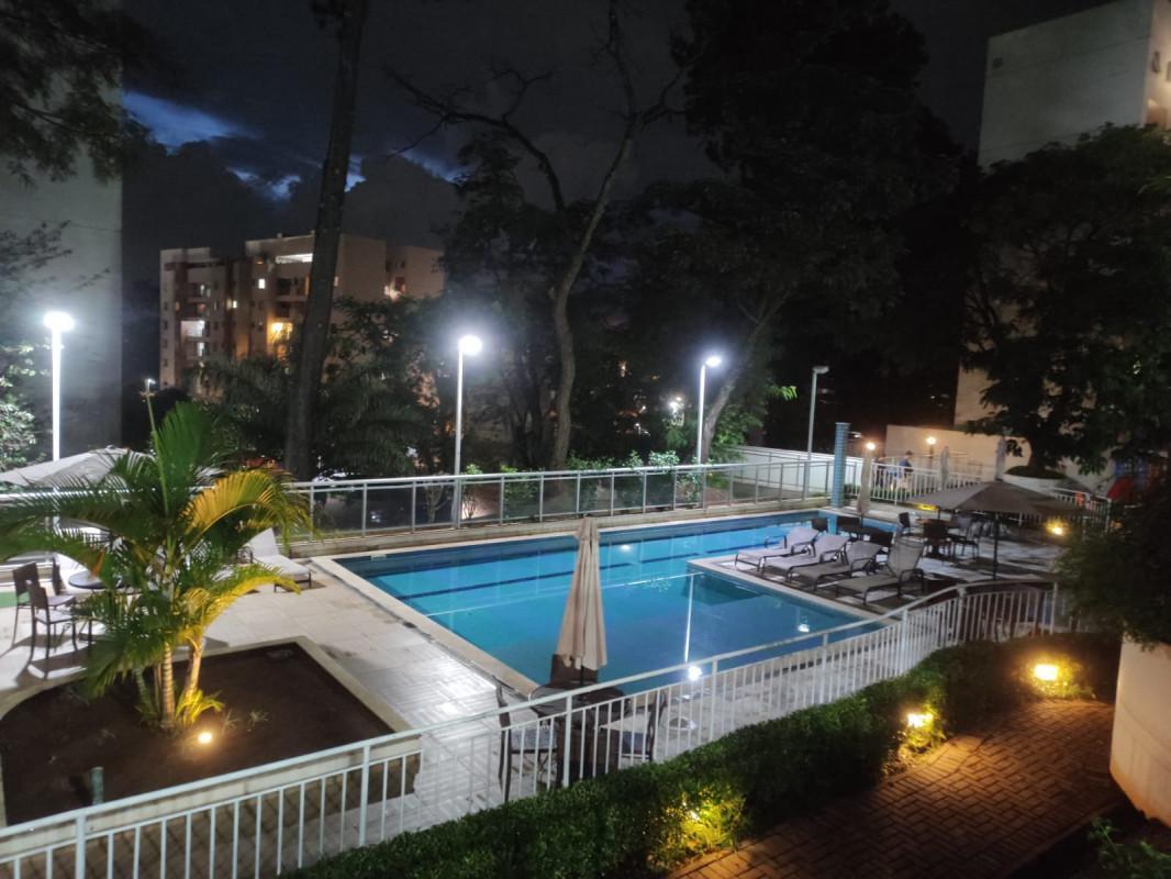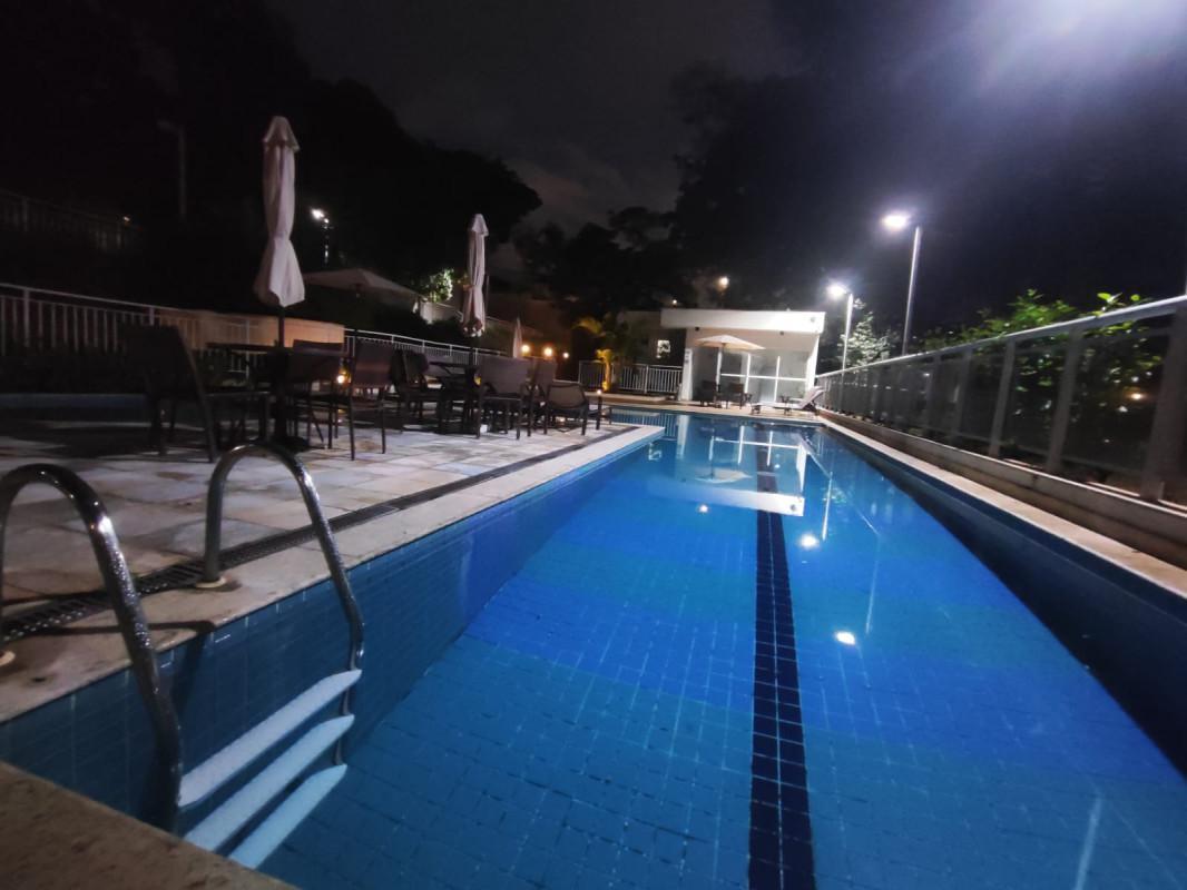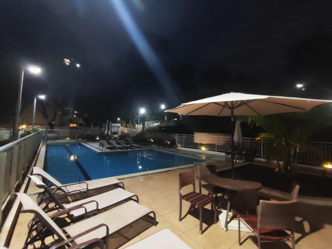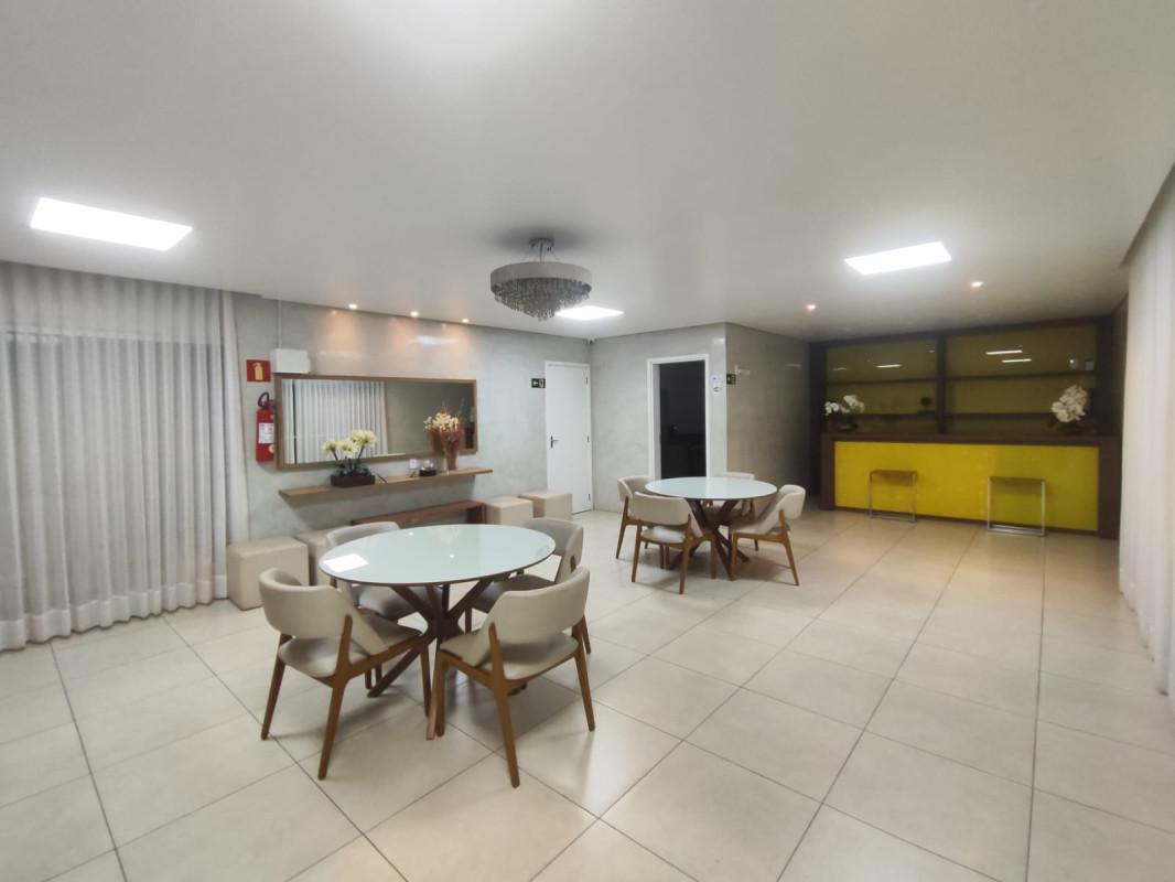 3 quartos sendo uma suite, sala ampla para dois ambientes, com varanda conjugada, banho social, elevador, duas vagas cobertas, predio com piscina adulta e infantil, quadra de futebol, espaço goumert com churrasqueira, salão de jogos, salão de festas, brinquedoteca, sauna, mercadinho, academia, portaria 24 horas.