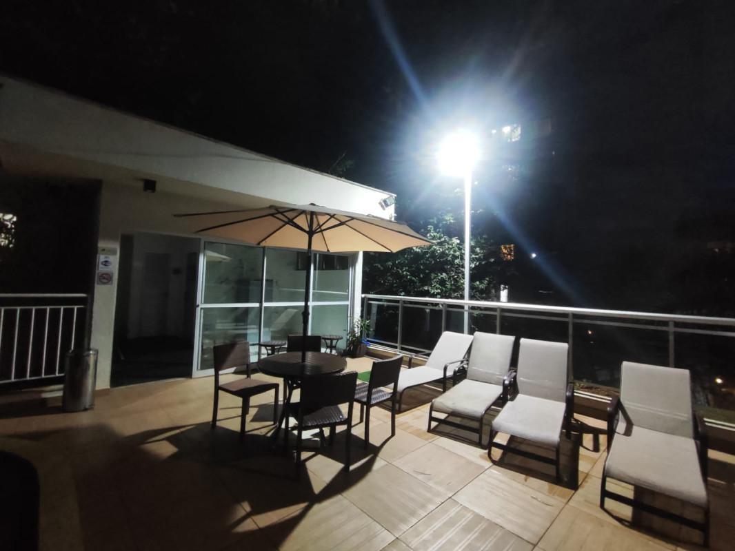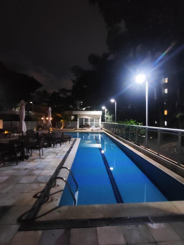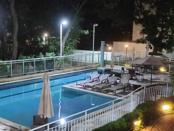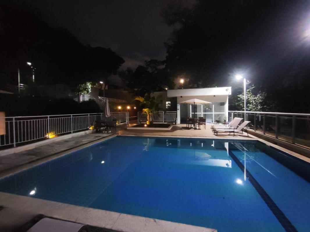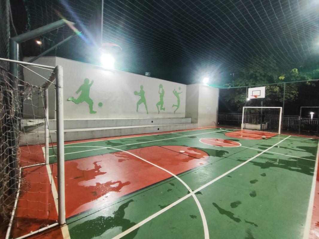 3 quartos sendo uma suite, sala ampla para dois ambientes, com varanda conjugada, banho social, elevador, duas vagas cobertas, predio com piscina adulta e infantil, quadra de futebol, espaço goumert com churrasqueira, salão de jogos, salão de festas, brinquedoteca, sauna, mercadinho, academia, portaria 24 horas.