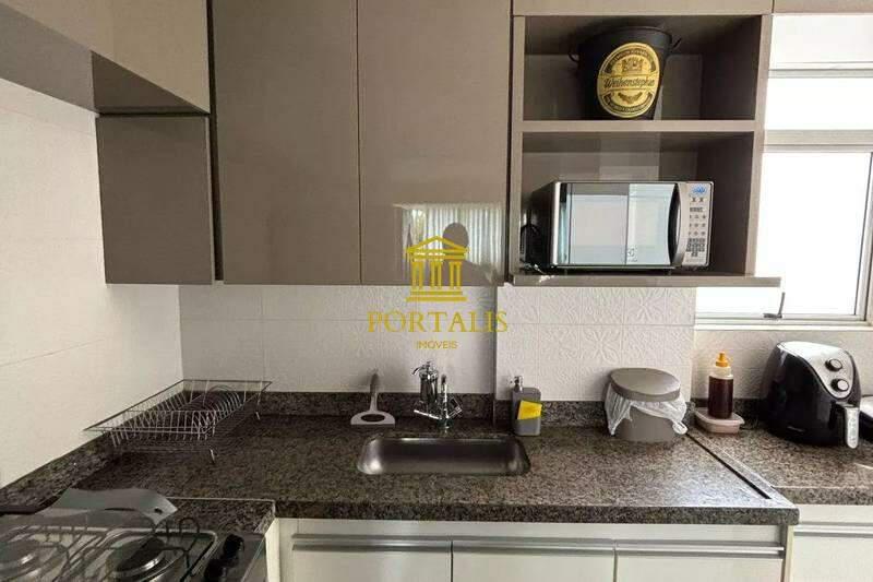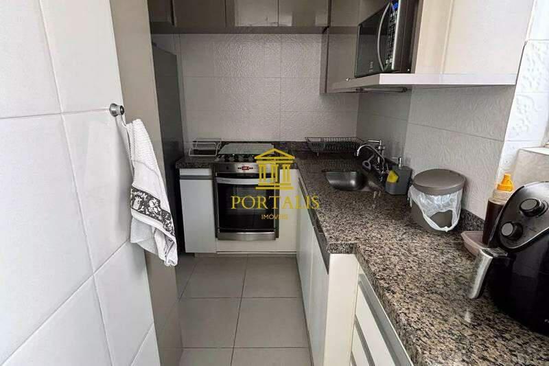 Cozinha espaçosa e funcional, com piso em porcelanato, armários planejados e bancada em granito