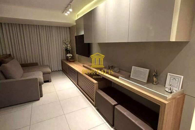 1 sala ampla e integrada para dois ambientes, com piso em porcelanato, teto rebaixado, iluminação toda planejada e totalmente decorada em laca