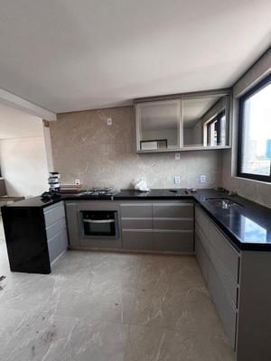 Apartamento com 95 m², possui 3 quartos todos com armários, suíte, 1 banho social com armário, 1 lavabo, sala para dois ambientes, cozinha americana, área de serviço e 3 vagas de garagem.