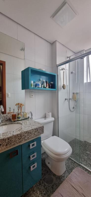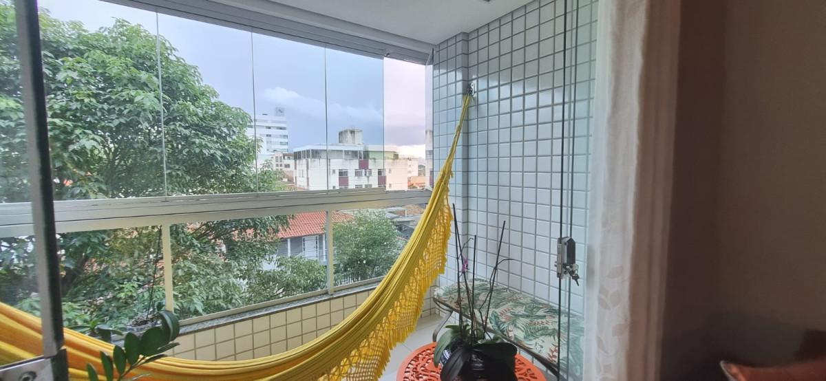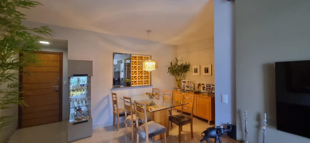 03 quartos sendo 01 suíte (todos com armários), sala em "L" para 02 ambientes com varanda, cozinha estilo americana com armários, área de serviço separada com despensa, banho social com blindex, armários e espelho. Acabamento de piso em granito na cozinha, área de serviço e banhos, laminado nos quartos, porcelanato na sala, 02 vagas de garagem demarcadas em linha. Aquecimento solar para os banhos,