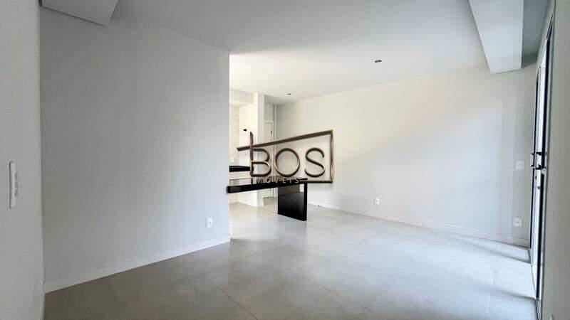 - Sala ampla para dois ambientes com teto rebaixado em gesso, piso em porcelanato e varanda integrada.