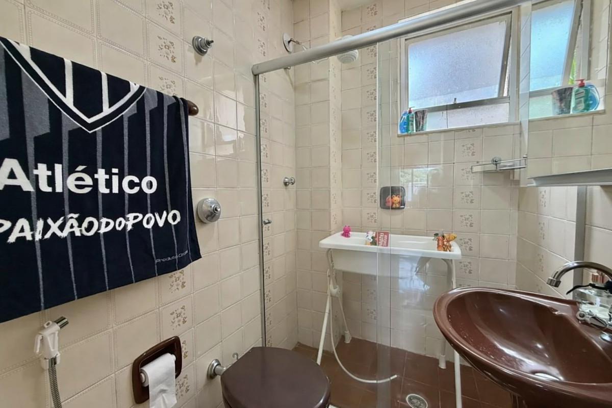 03 quartos com excelentes armários e piso em taco de madeira, sendo originalmente 04 (um quarto foi integrado à sala, com possibilidade de reversão), incluindo 01 suíte com armário, espelho e box em vidro temperado (blindex).