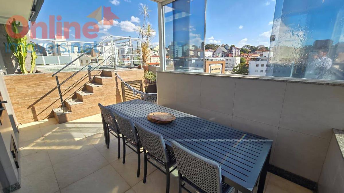 Cobertura à Venda ¿ 3 Quartos (1 Suíte Master com Closet) ¿ 3 Vagas ¿ Alto Padrão ¿ Santa Rosa Cobertura duplex com acabamento de alto padrão e localização privilegiada, ideal para quem busca conforto, sofisticação e qualidade de vida.O imóvel foi planejado com atenção aos detalhes, oferecendo marcenaria sob medida, climatização completa e integração perfeita entre os ambientes. 1º Pavimento 3 quartos, sendo 1 suíte master com closet e armários planejados de alta qualidadeTodos os quartos com ar-condicionado e venezianas integradasSala íntima com piso em porcelanatoBanheiro social com armário sob medida e acabamento refinado 2º Pavimento Sala ampla para dois ambientes, com rebaixamento em gesso, projeto luminotécnico e ar-condicionadoSala de jantar integrada e lavaboCozinha moderna e funcional, rica em armários planejados Área gourmet coberta, com churrasqueira e bancadas em granitoPiscina aquecida de 6.000 litros, com teto retrátil e vista privilegiada Diferenciais Elevador com acesso até o segundo pavimento da coberturaSistema de aquecimento de água em torneiras e chuveirosAcabamento de alto padrão: porcelanato nas áreas sociais e laminado nos quartosMarcenaria planejada em todos os ambientes3 vagas de garagem cobertas (2 livres e 1 presa) no pilotis Estrutura do Prédio Prédio 100% revestidoSalão de festasMedidores individuais de água e gásAmbiente seguro, moderno e bem conservado Localização Bairro valorizado e tranquilo de Belo HorizontePróximo a comércios, escolas, academias, restaurantes e vias principaisFácil acesso às principais regiões da cidade Valores sujeitos a alteração sem aviso prévio.