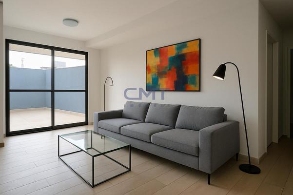 Sala para dois ambientes com piso em porcelanato e amplo acesso à área externa, proporcionando melhor ventilação e luminosidade natural no interior do ambiente. Ambiente conta também com lavabo com piso em porcelanato e bancada em granito com cuba sobreposta.