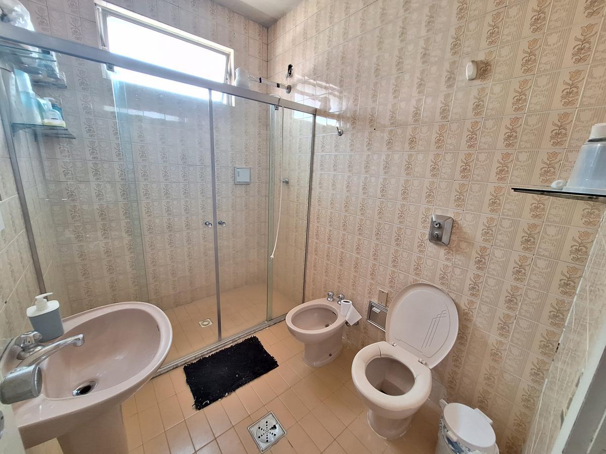 Banho social com piso cerâmica e box,