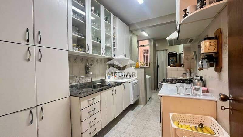 Cozinha toda com armários planejados, piso em cerâmica e bancada em granito