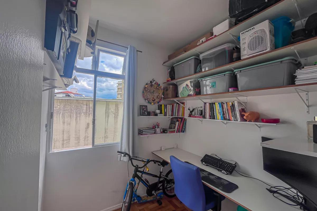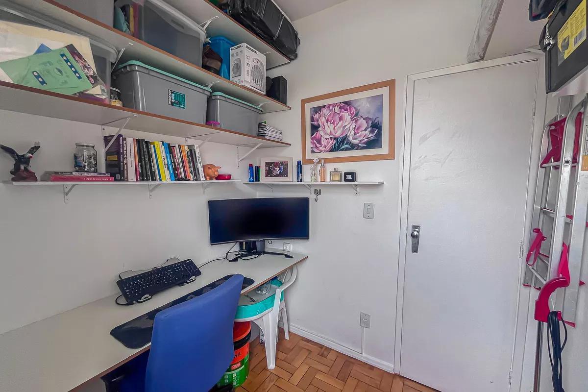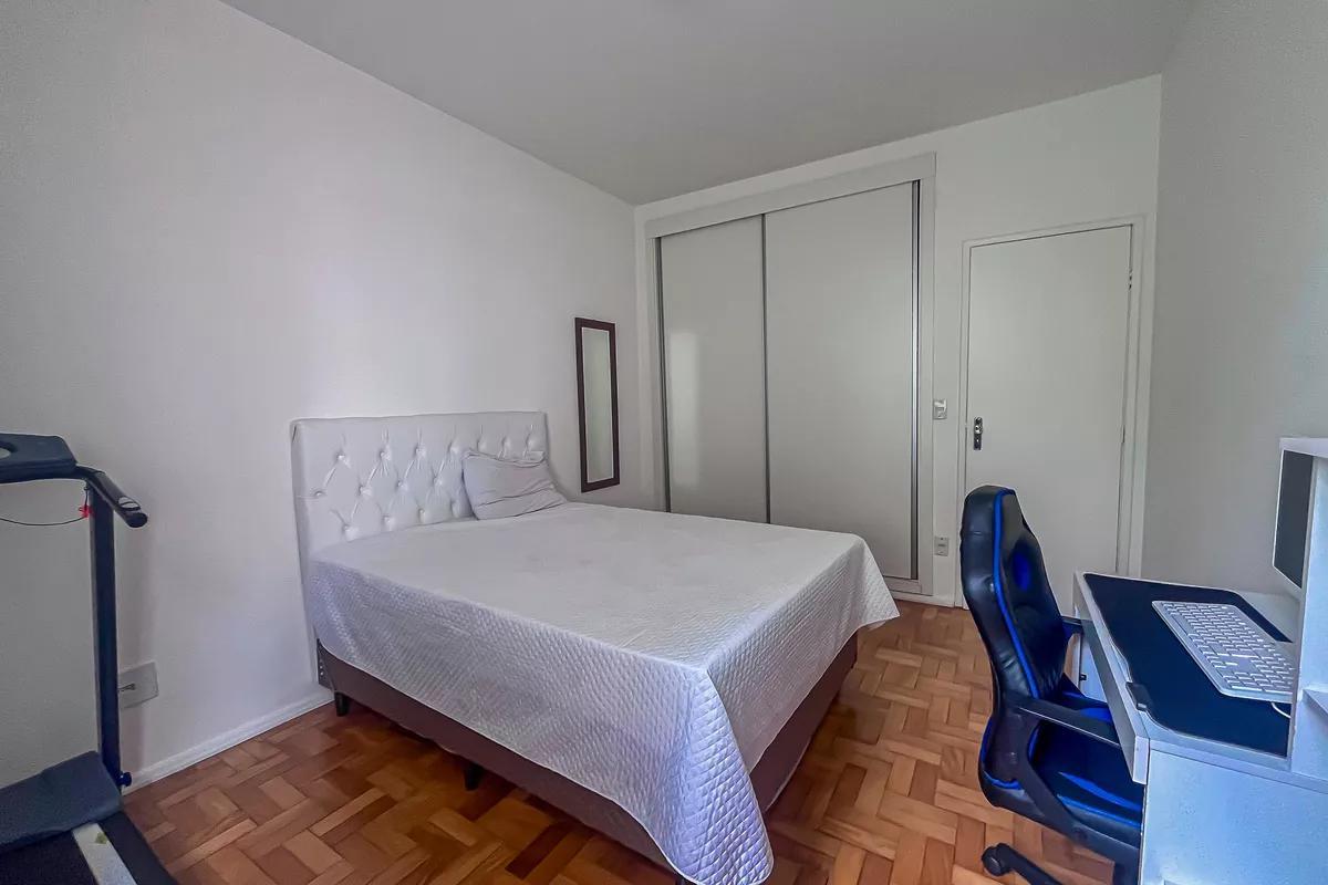 Apartamento com área de 110m², sala ampla para 02 ambientes com piso em vinílico de madeira, 03 quartos amplos, todos com piso em taco de madeira e armários, banheiro social amplo com bancada em granito, armários, espelho e box em blindex, cozinha com piso e bancada em granito e armários, área de serviço e DCE.