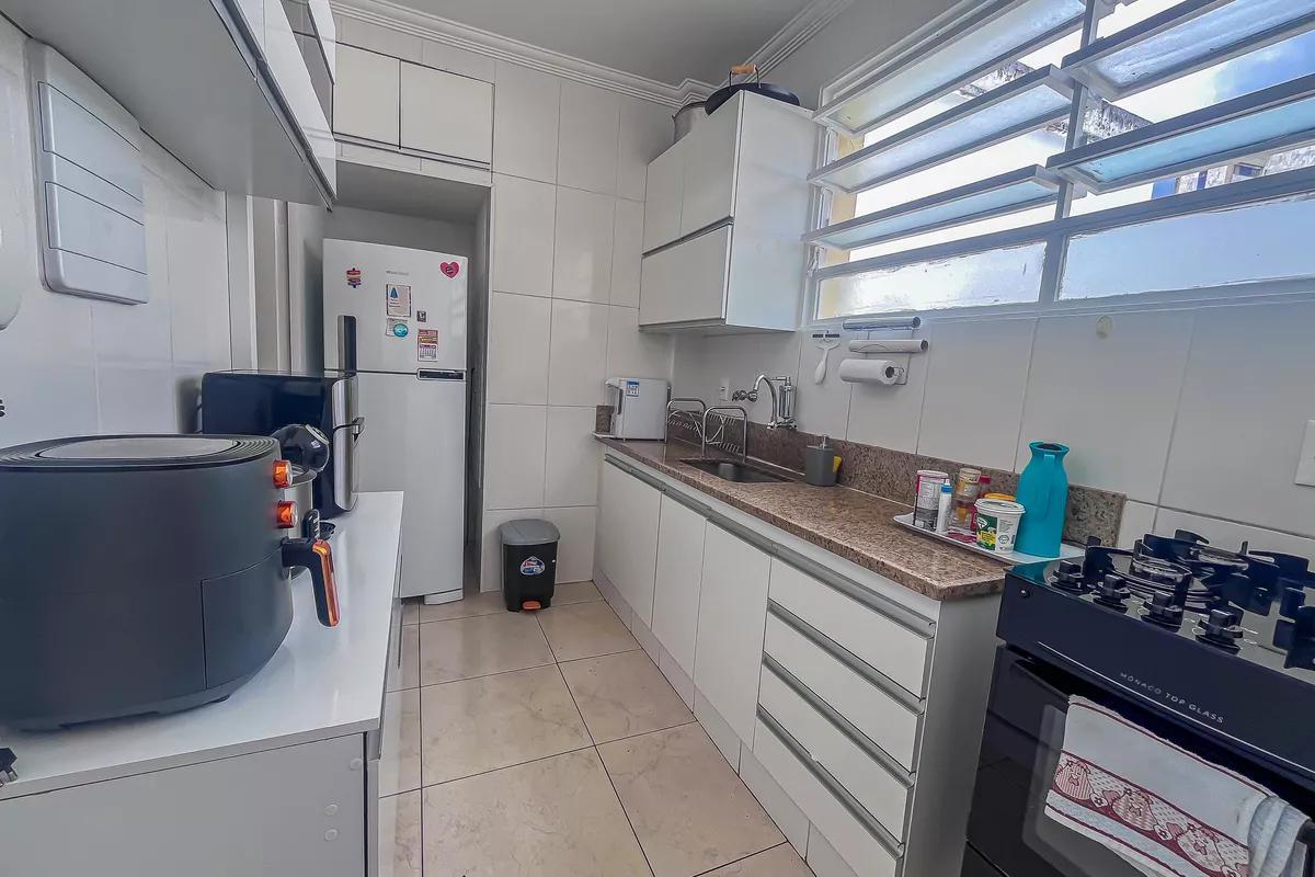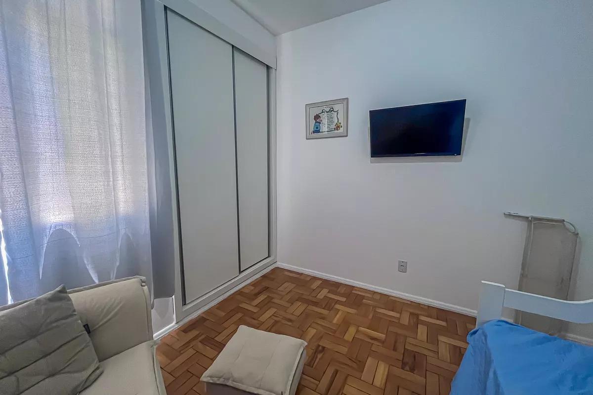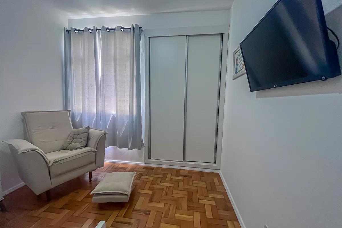 1 sala ampla para dois ambientes com piso em vinílico de madeira 3 quartos amplos, todos com piso em taco de madeira e armários Cozinha com piso e bancada em granito e armários planejados Banheiro social amplo com bancada em granito, armários, espelho e box em blindex Área de serviço com tanque DCE 1 vaga de garagem coberta e demarcada
