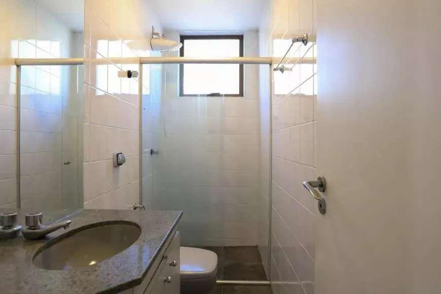 3 quartos: Sendo 1 suíte com varanda e 2 dormitórios. Todos com armários planejados, piso em tábua corrida e janelas com veneziana, garantindo um ambiente arejado e silencioso.