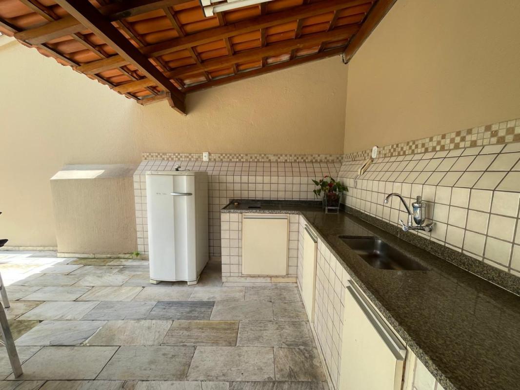 Cozinha funcional, com marcenaria nova, armários planejados, bancada e piso em granito, garantindo praticidade no dia a dia.