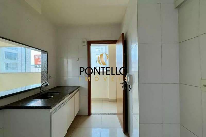 Cozinha funcional, equipada com armários planejados, bancada em granito e piso em porcelanato.