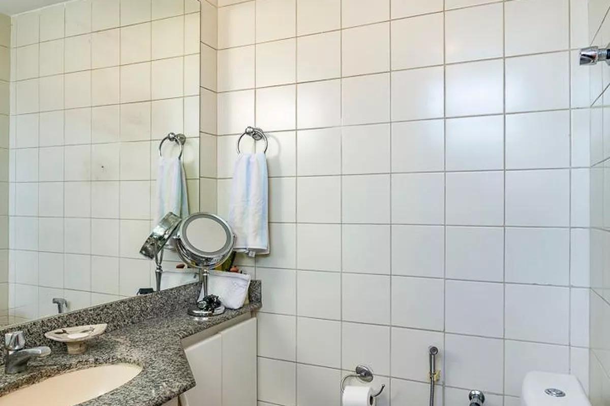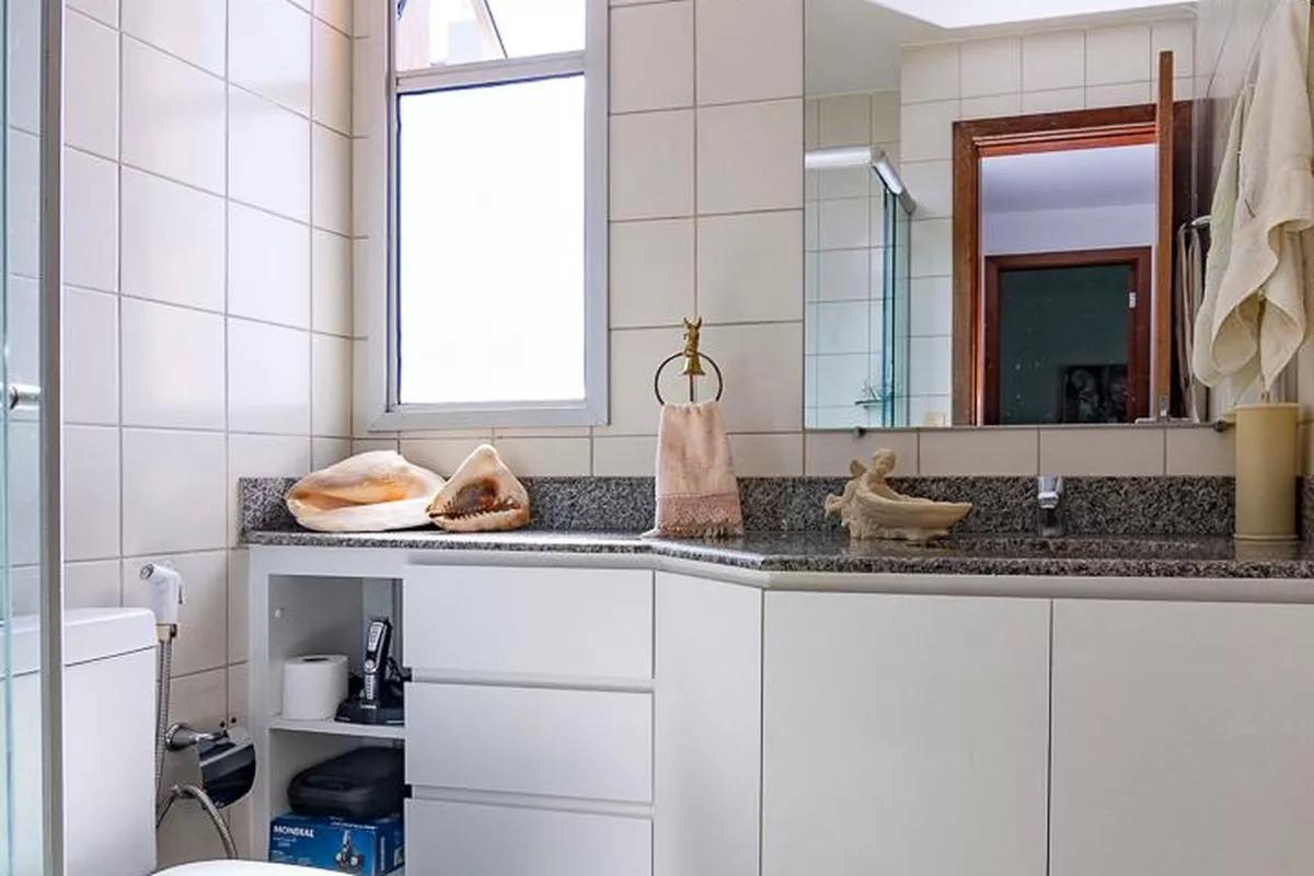 Apartamento com área de 97m², sala em ¿L¿ para 02 ambientes, com piso em tábua corrida, iluminação personalizada e varanda integrada, rouparia no corredor, 03 quartos com armários planejados e piso em tábua corrida, sendo 01 suíte com closet, banheiros (social e suíte) com acabamento em cerâmica, espelho, armário e box em blindex, cozinha funcional com armários planejados, bancadas e piso em granito, área de serviço independente e DCE.