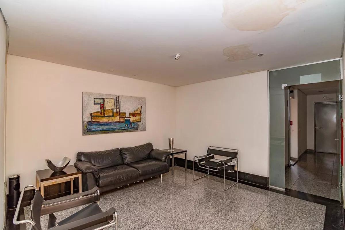 Excelente localização, 400 metros do Pátio Savassi, prédio possui hall social, portaria 24 horas, elevador, interfone, portão eletrônico, circuito interno de TV, alarme, piscina adulto e infantil, salão de festas, churrasqueira, quadra poliesportiva, 02 vagas de garagem em linha, cobertas e demarcadas.
