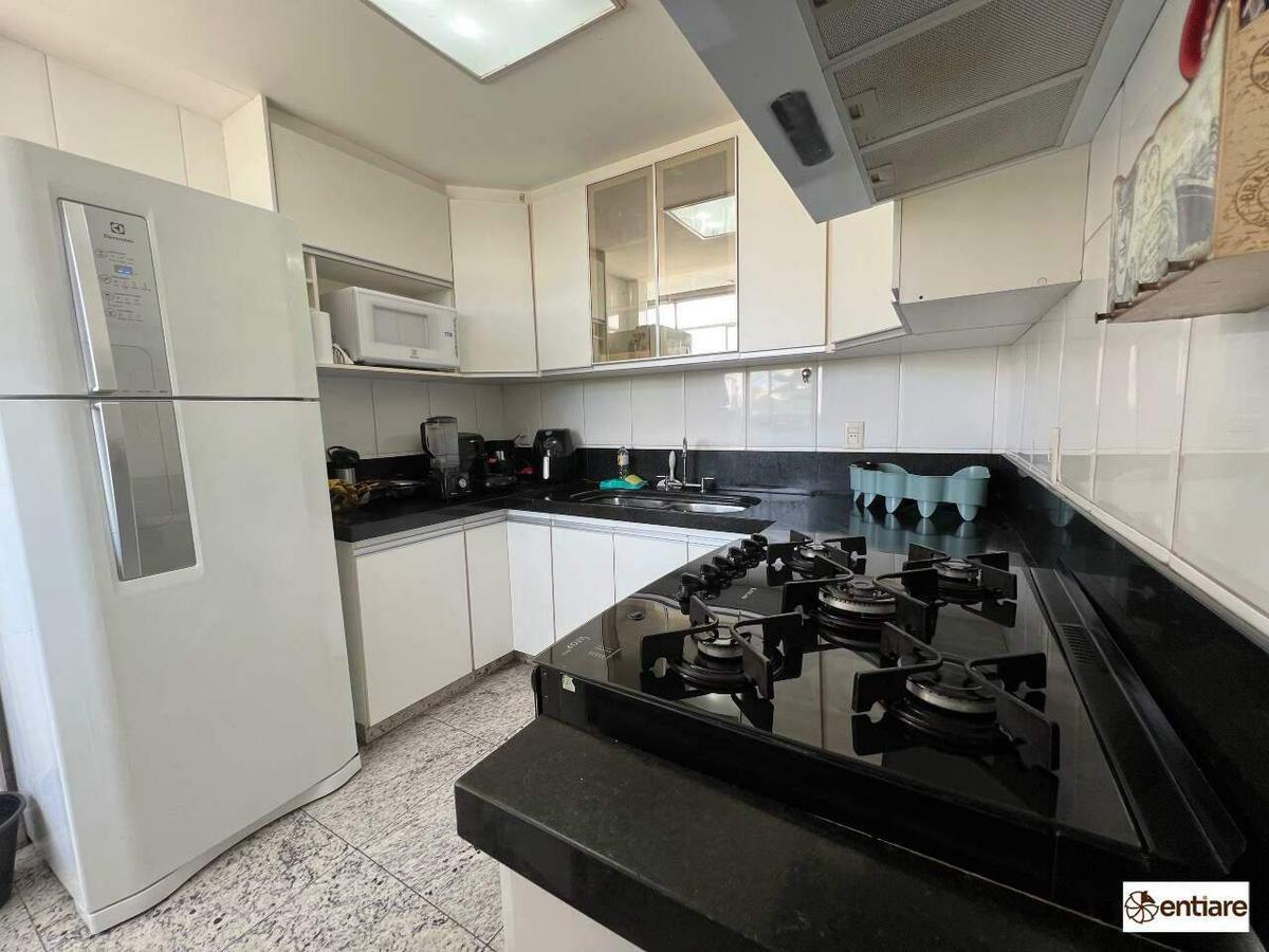 Cozinha rica em armários, área de serviço e quartinho de funcionários.