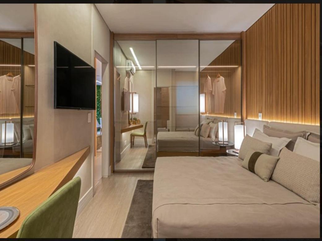 Monitorado por cameras de seguranca social e de servico independentes. Area para delivery independente. Controle de acesso ao portao das garagens e a portaria social atraves de CFTV. Acesso nas areas de lazer atraves de biometria, senha, cartao ou reconhecimento facial. Sensor de presenca nas areas comuns, garagens e halls. Estacao de recarga para carros eletricos, bicicletario.Lazer com piscina infantil, piscina adulto, solarium, espelho d agua, lounge gourmet, sauna, espaco massagem, espaco beleza, piscina coberta com raia, quadra de tenis coberta, quadra poliesportiva, saloes de festas, espacos kids, fitness, playground, home cinema.