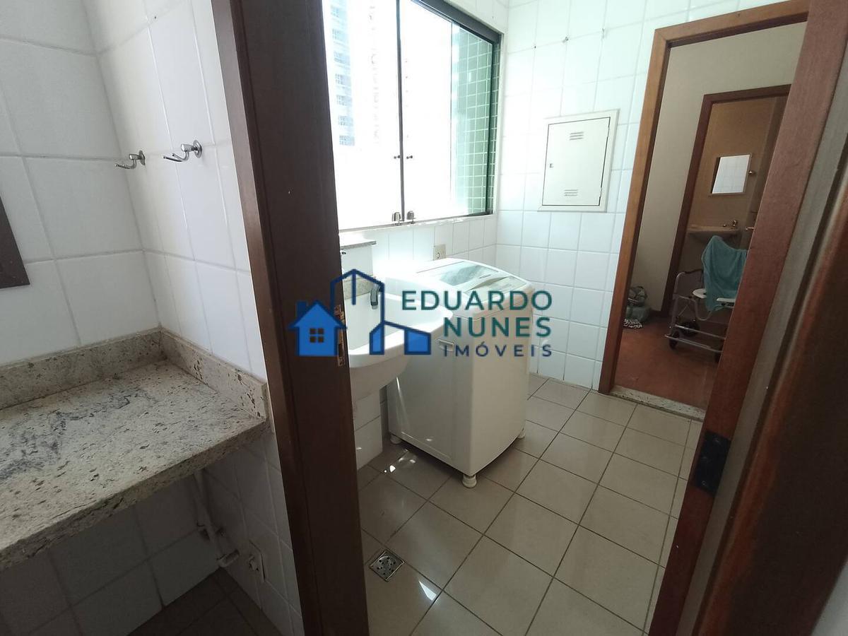 Apartamento com sala com rebaixamento de teto, iluminação planejada, piso em granito, varanda, lavabo, 03 quartos com armários, janelas de alumínio anodizada, piso em porcelanato, sendo 01 suíte, banho social e suíte com box em vidro temperado, armários, bancada em granito, piso em cerâmica, cozinha com armários, bancada e piso em cerâmica, área de serviços, DCE.