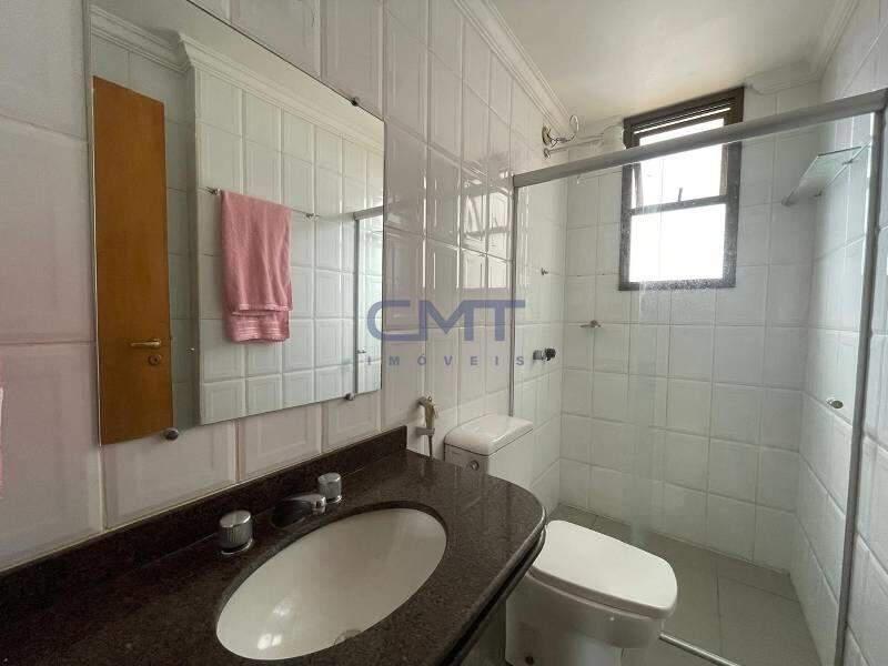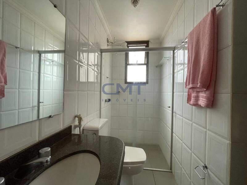 Banheiros (social e suíte) com piso em cerâmica, bancadas em granito e box blindex.