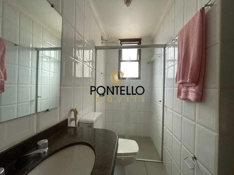 Banheiros (social e suíte) com piso em cerâmica, bancadas em granito e box blindex.