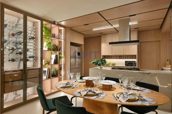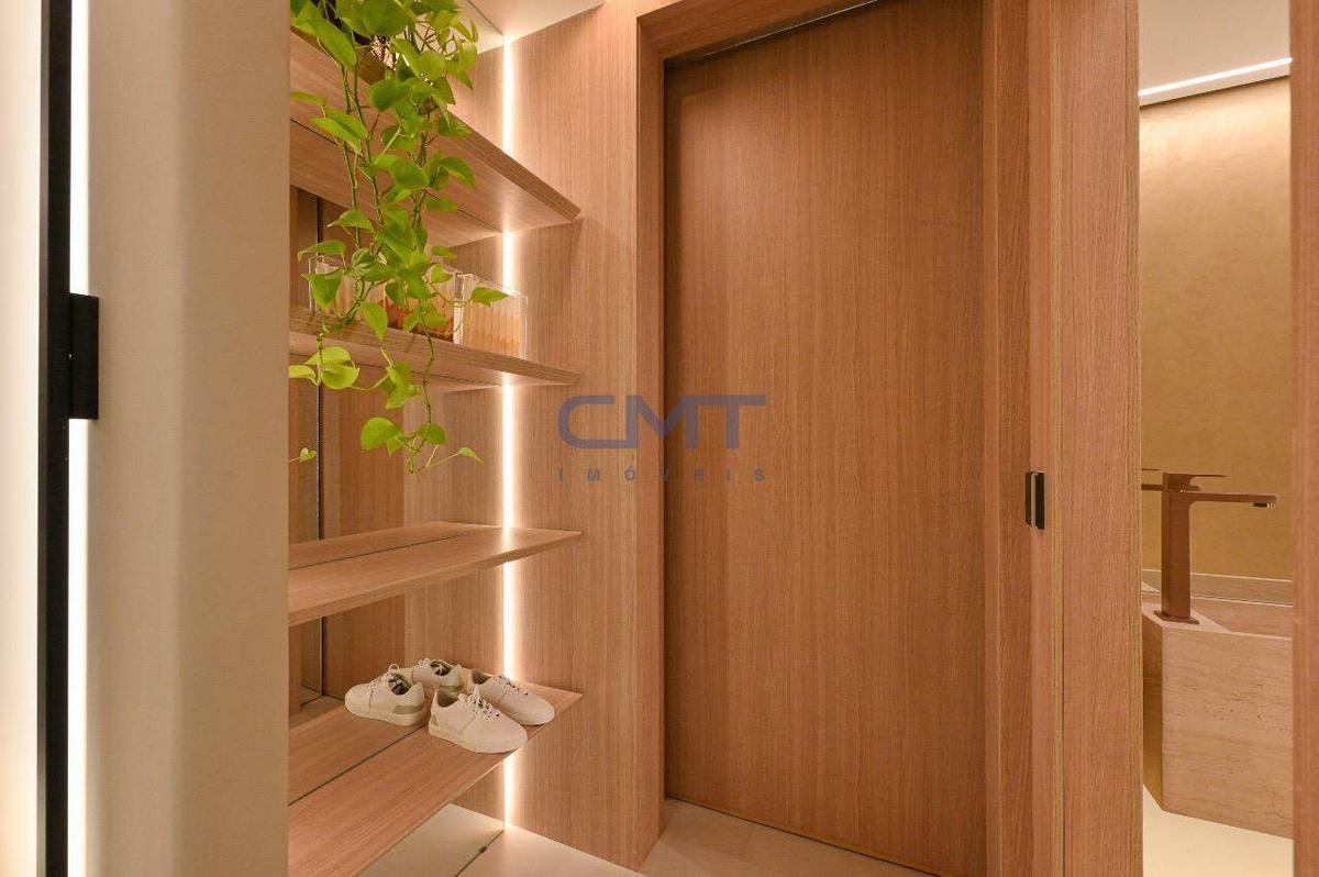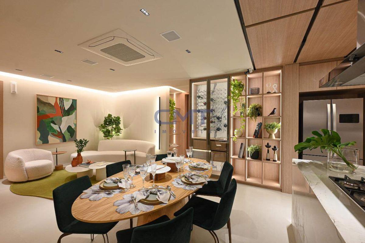 Sala para dois ambientes com piso em porcelanato, lavabo social, janelas em esquadria com persianas integradas e automatizadas, fechaduras digitais nas portas principais, borracha antirruído nas portas, previsão de infraestrutura para ar-condicionado. Acesso à varanda gourmet em esquadria de alumínio