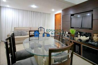 Apartamento com sala para 2 ambientes, toda de mármore, teto rebaixado e varanda com blindex, 3 quartos em tabua corrida, todos com armários, sendo 1 suite totalmente reformada, com armários e bancada em granito, banheiros reformados, com armários e box blindex, cozinha com piso e bancada em mármore, totalmente reformada e com armários, ampla área de serviço, DCE.