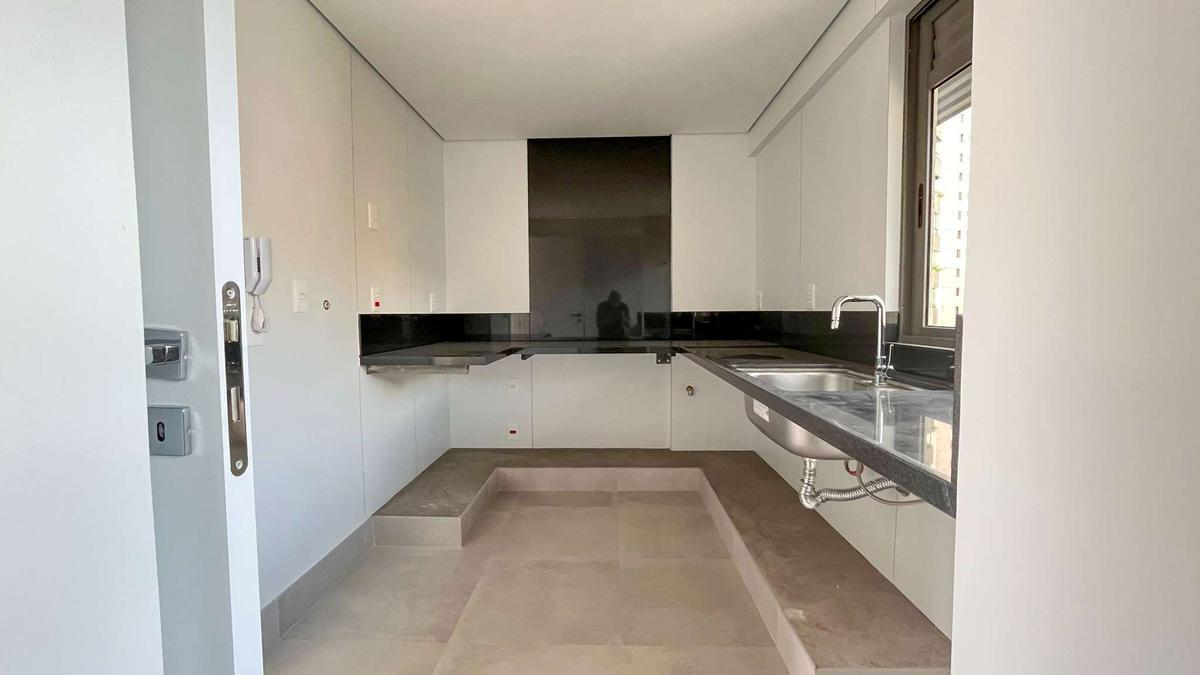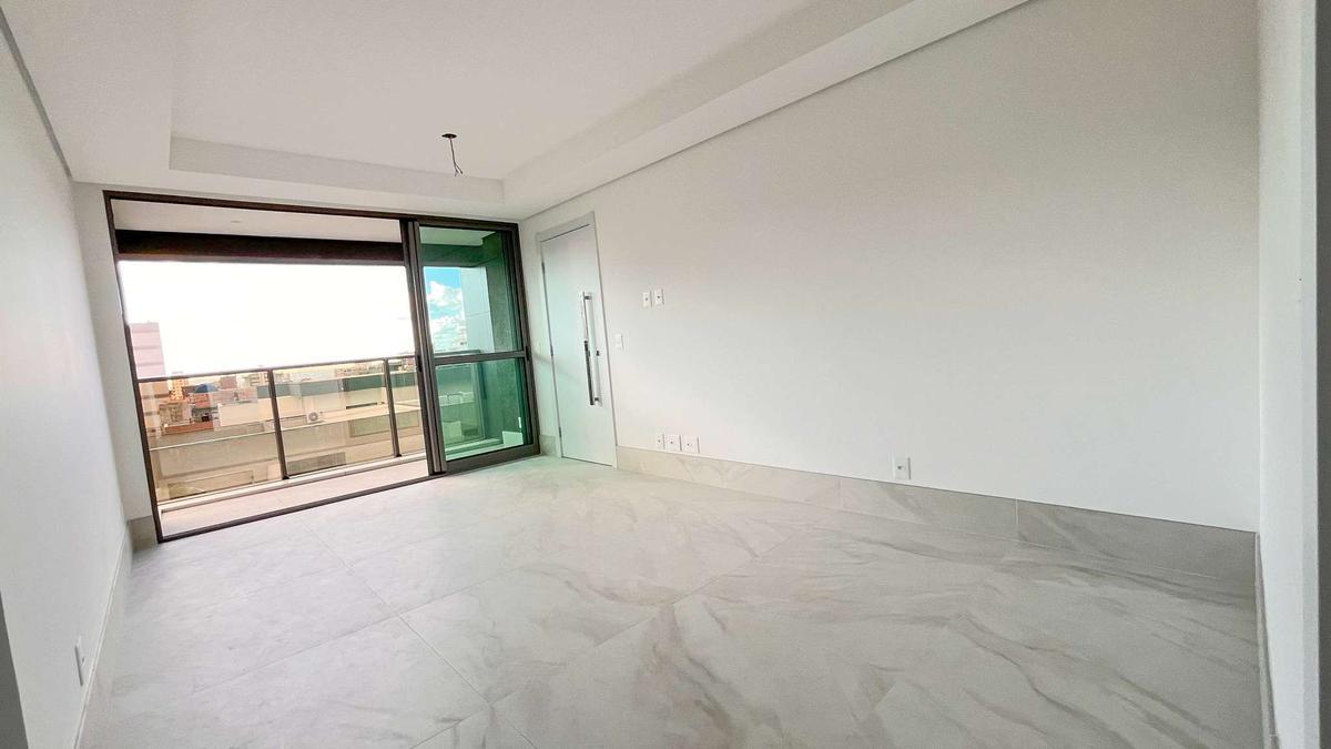 Apartamento de 84m² no bairro Serra. O imóvel conta com sala para dois ambientes com varanda. 3 quartos, sendo 1 suíte master com closet e 2 semi suítes. Lavabo. Cozinha com bancada em granito. Área de serviço independente com bancada em granito. Pisos em laminado de madeira nos quartos e porcelanato na sala, cozinha, área de serviço e banheiros.