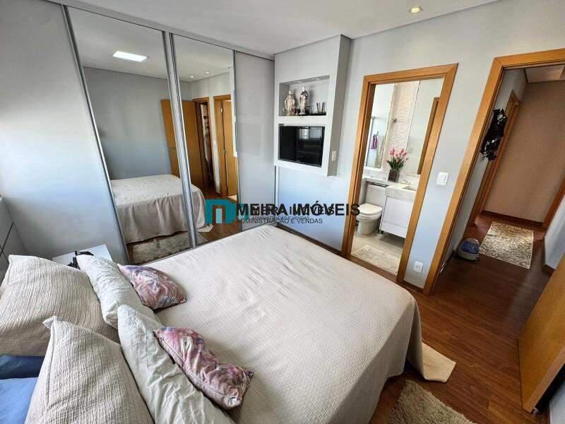 3 quarto amplos, todos com piso em laminado, armários, sendo uma suíte com bancada em granito, espelho, armários planejados e box em blindex