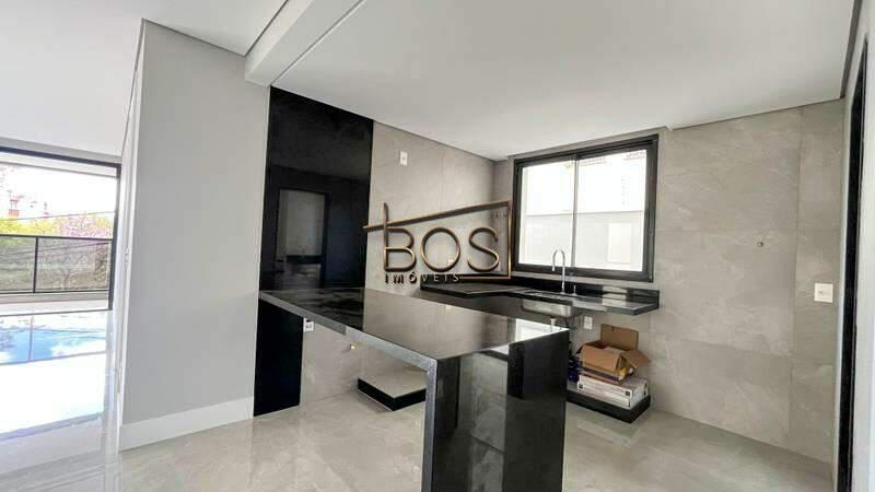 - Cozinha é ampla e funcional com piso e parede em porcelanato, bancada americana e pia em granito preto
