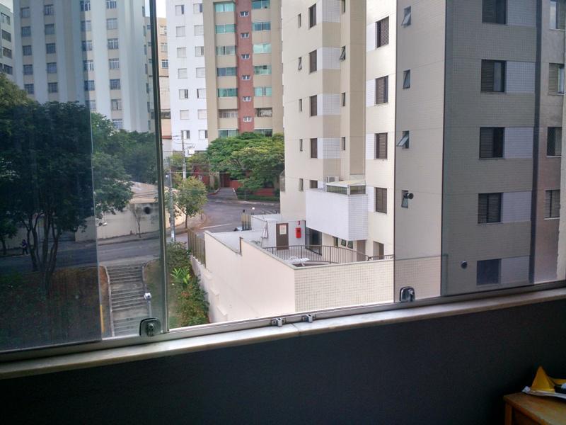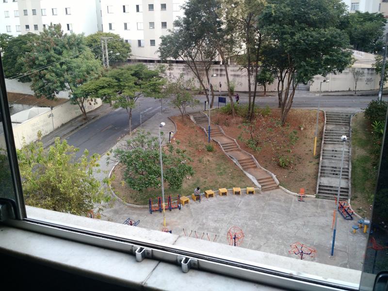 Apartamento de fundos, andar alto, vista definitiva para uma praça.
