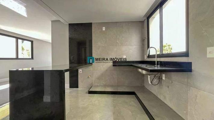 ¿ Cozinha é ampla e funcional com piso e parede em porcelanato, bancada americana e pia em granito preto