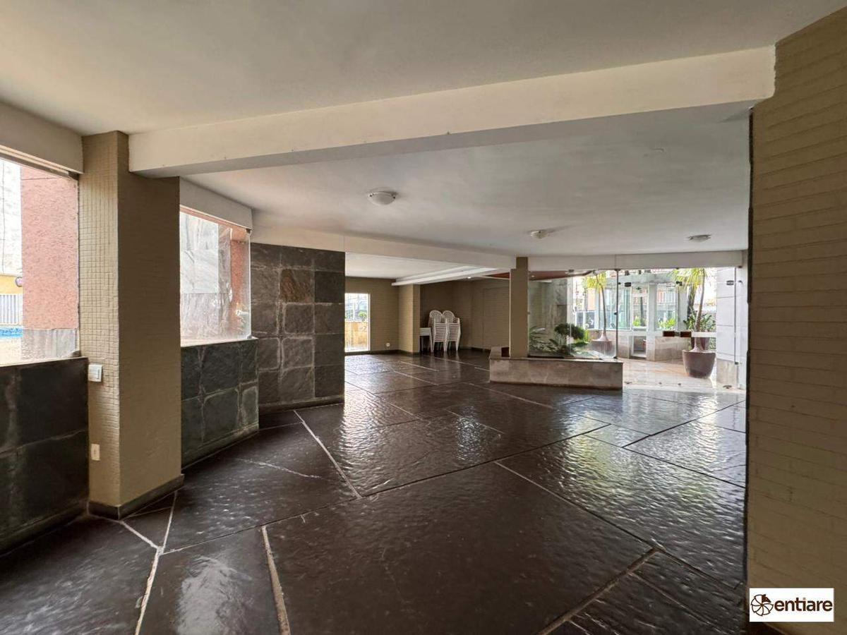 O apartamento conta com 3 quartos, sendo 1 suíte, sala ampla e bem espaçosa com excelente iluminação natural, 2 banheiros, cozinha integrada com área de serviço, despensa e dependência completa de empregada (DCE). Possui 2 vagas de garagem cobertas e livres e prédio com 2 elevadores.