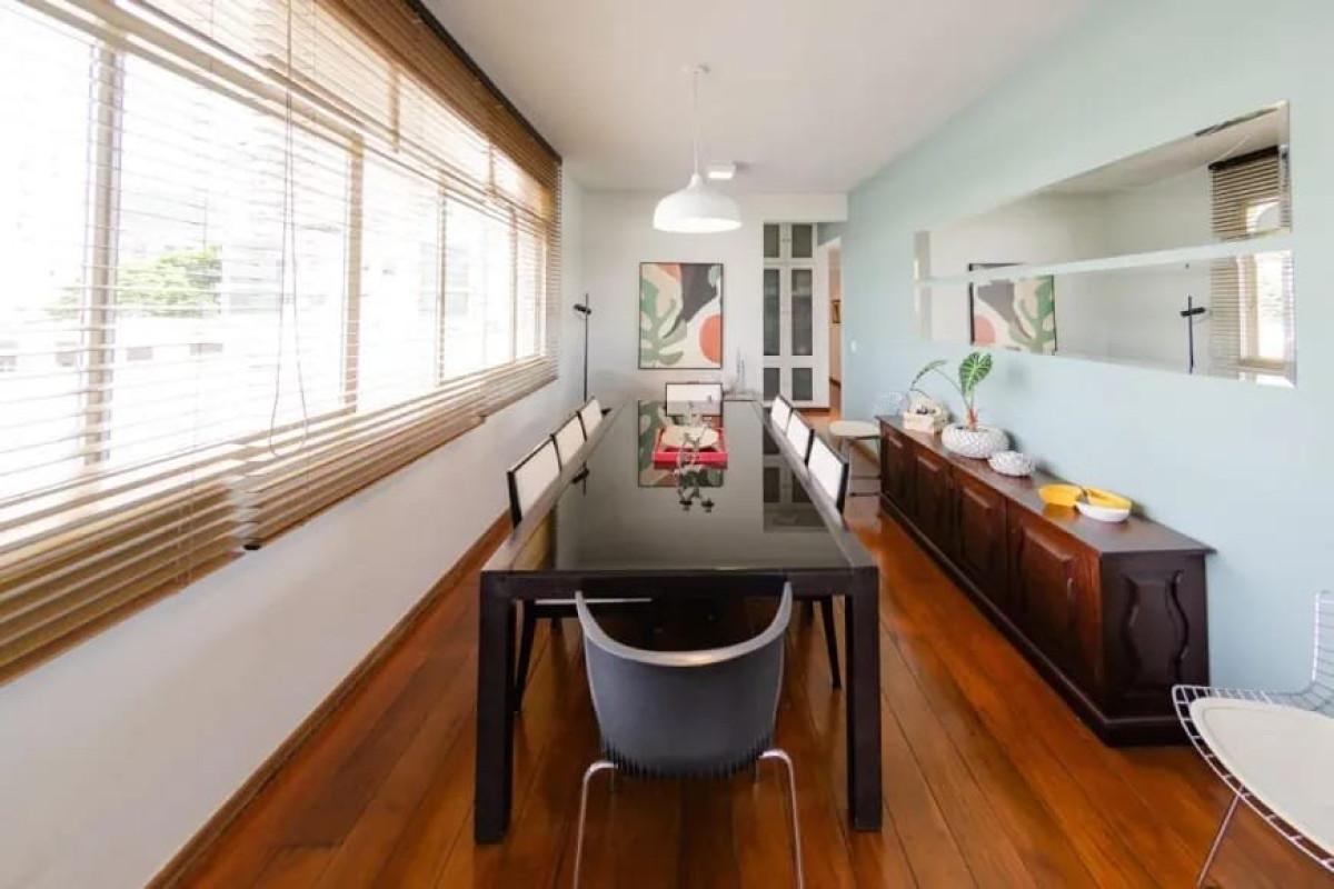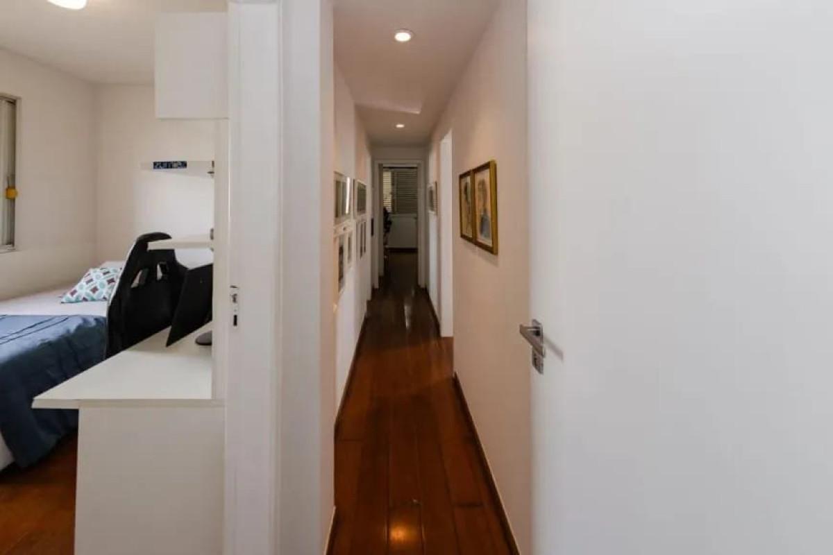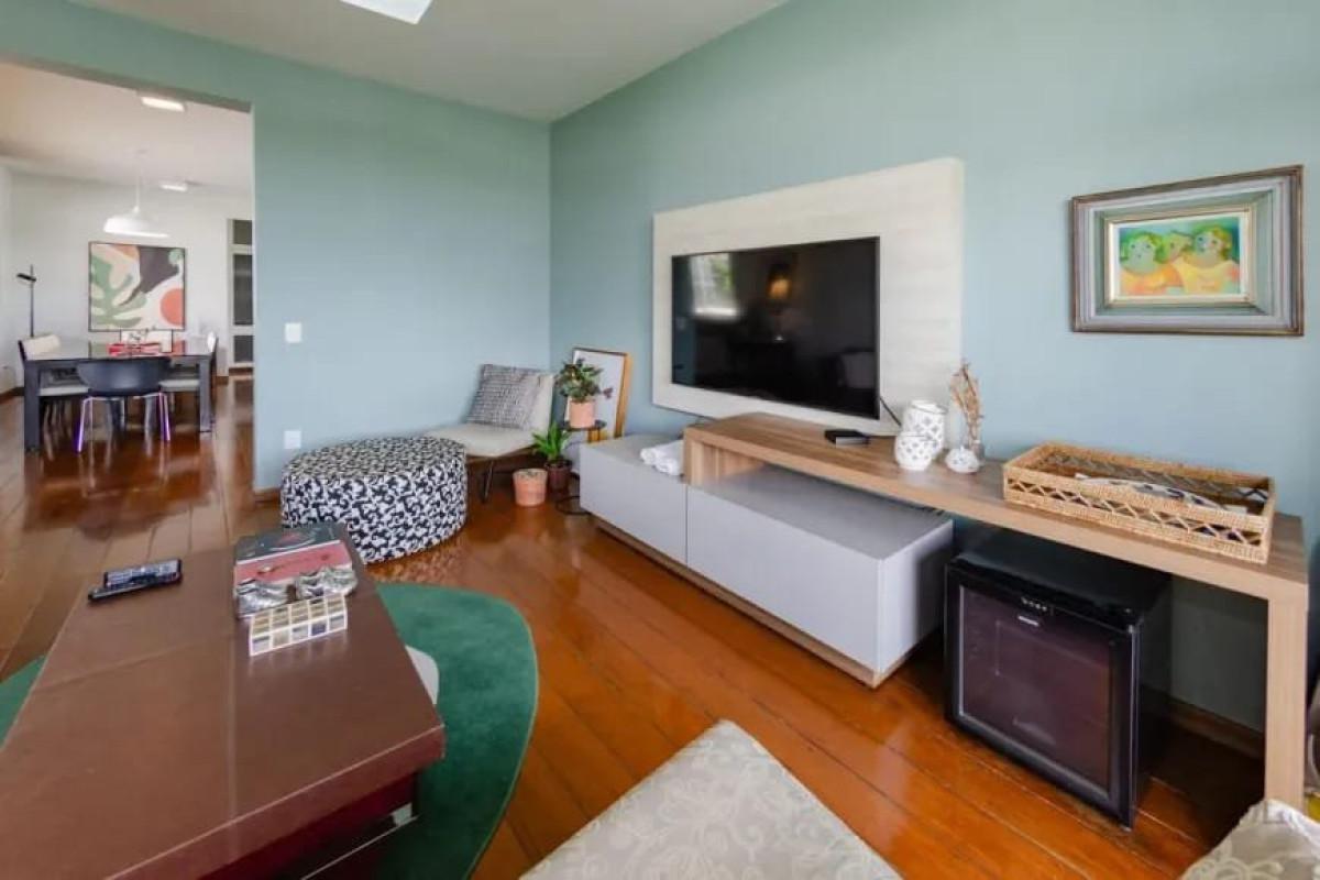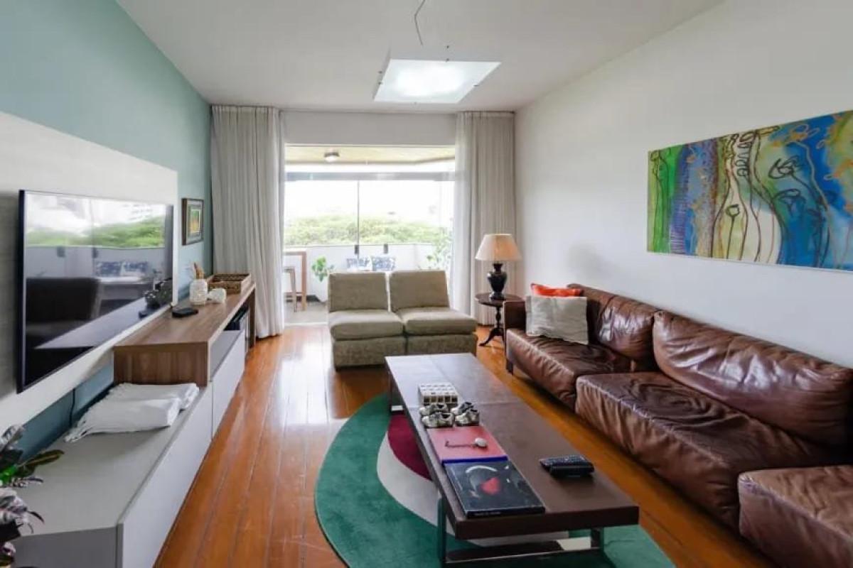 Apartamento com área de 144m², sala para 02 ambientes com piso em tábua corrida, varanda, lavabo, 03 quartos com armários, sendo 01 suíte com closet, banho social (banhos com box blindex, armários e espelhos), cozinha com armários, área de serviço e DCE.